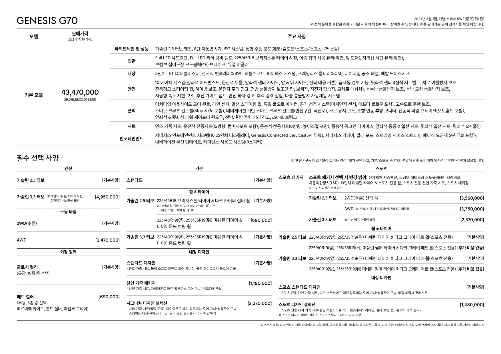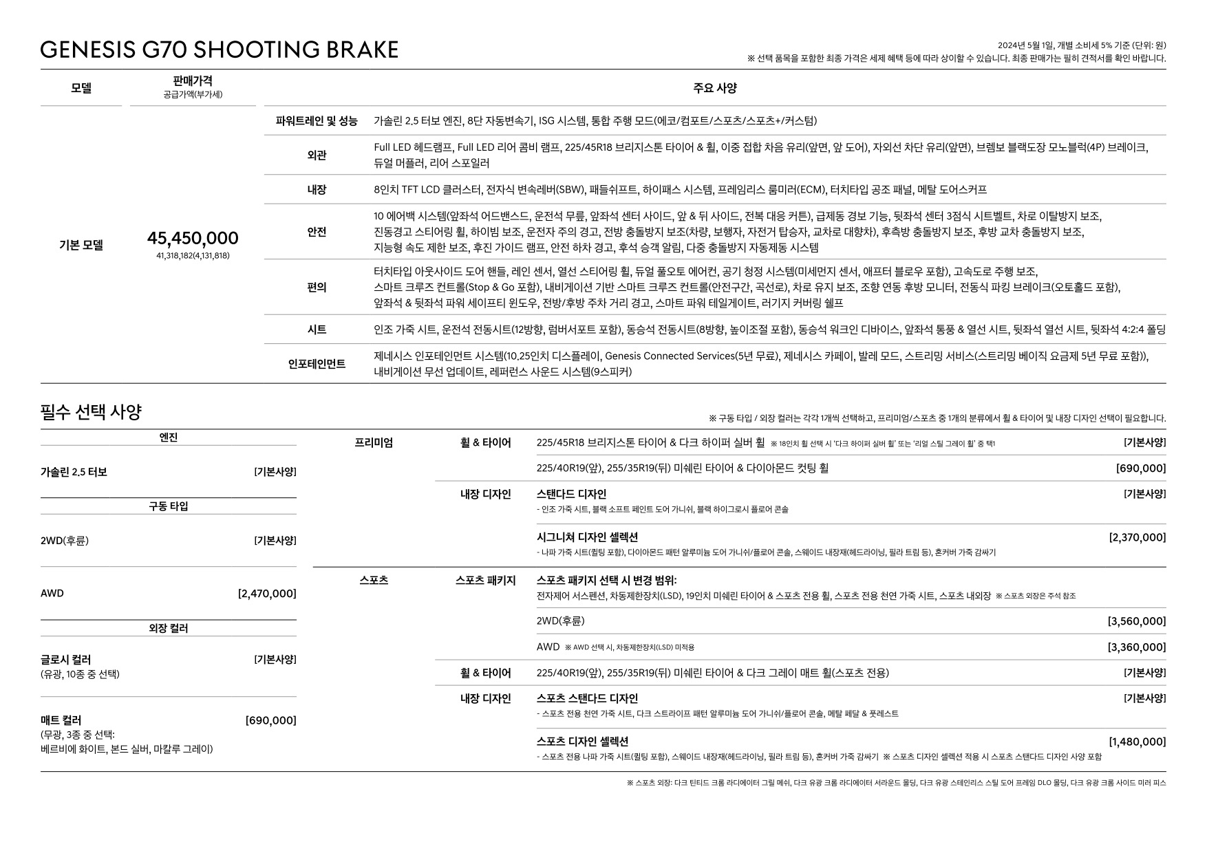 2024년 5월 G70 & G70 슈팅브레이크 신차가격표
