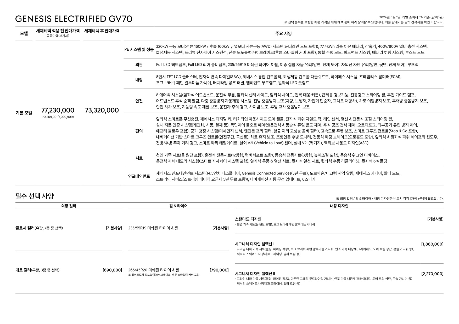 2024년 6월 제네시스 일렉트릭파이드 GV70 신차가격표 (GV70 전기차)