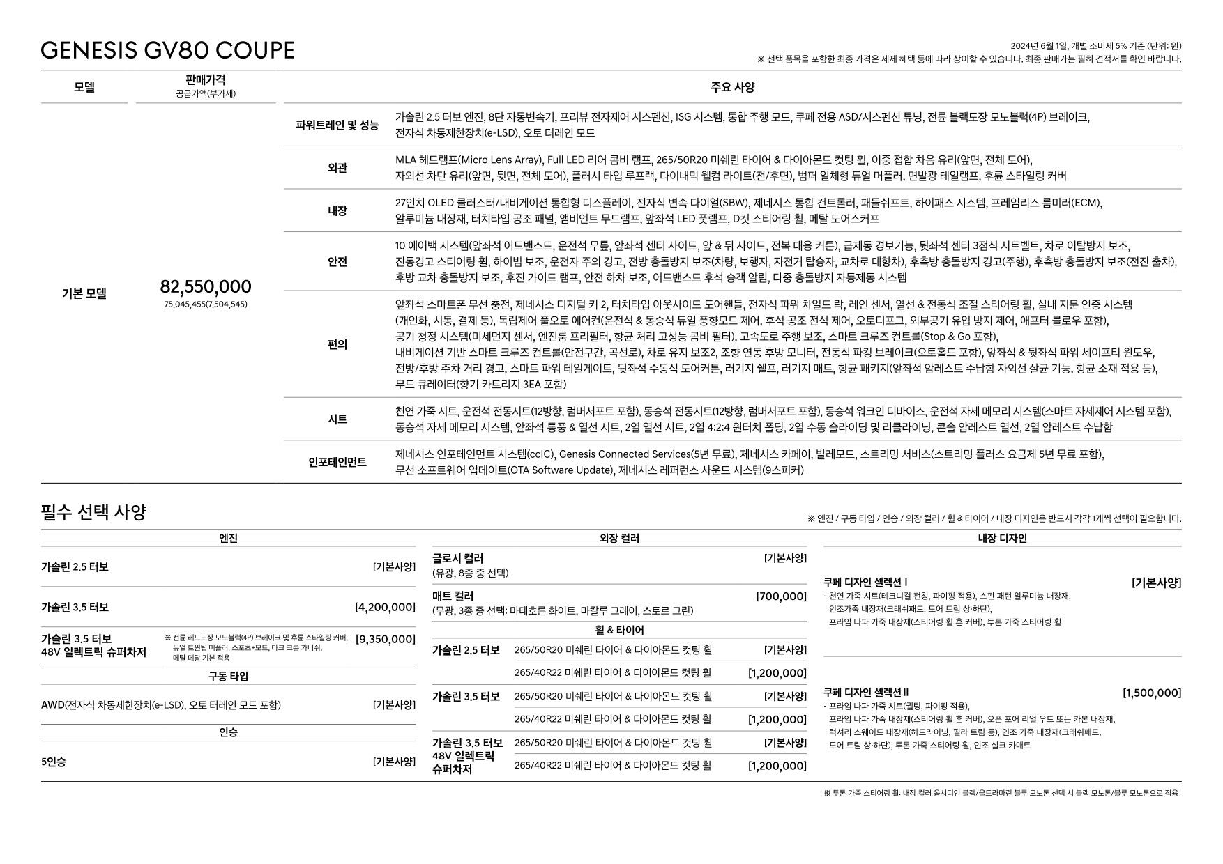 2024년 6월 제네시스 GV80 쿠페 신차가격표