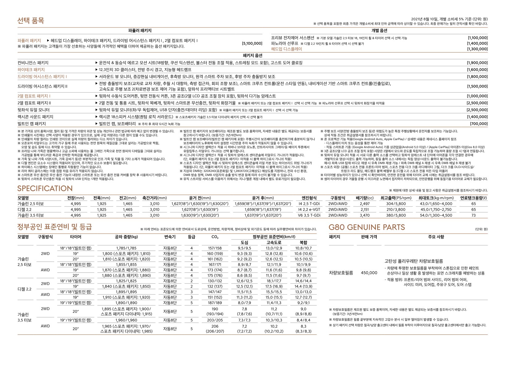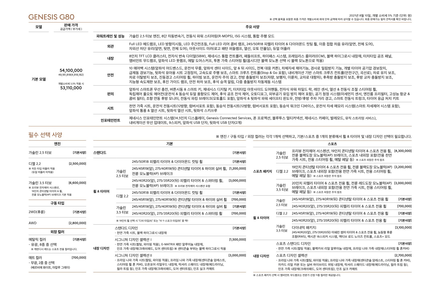 2021년 8월 G80 신차가격표 (G80 스포츠 출시)