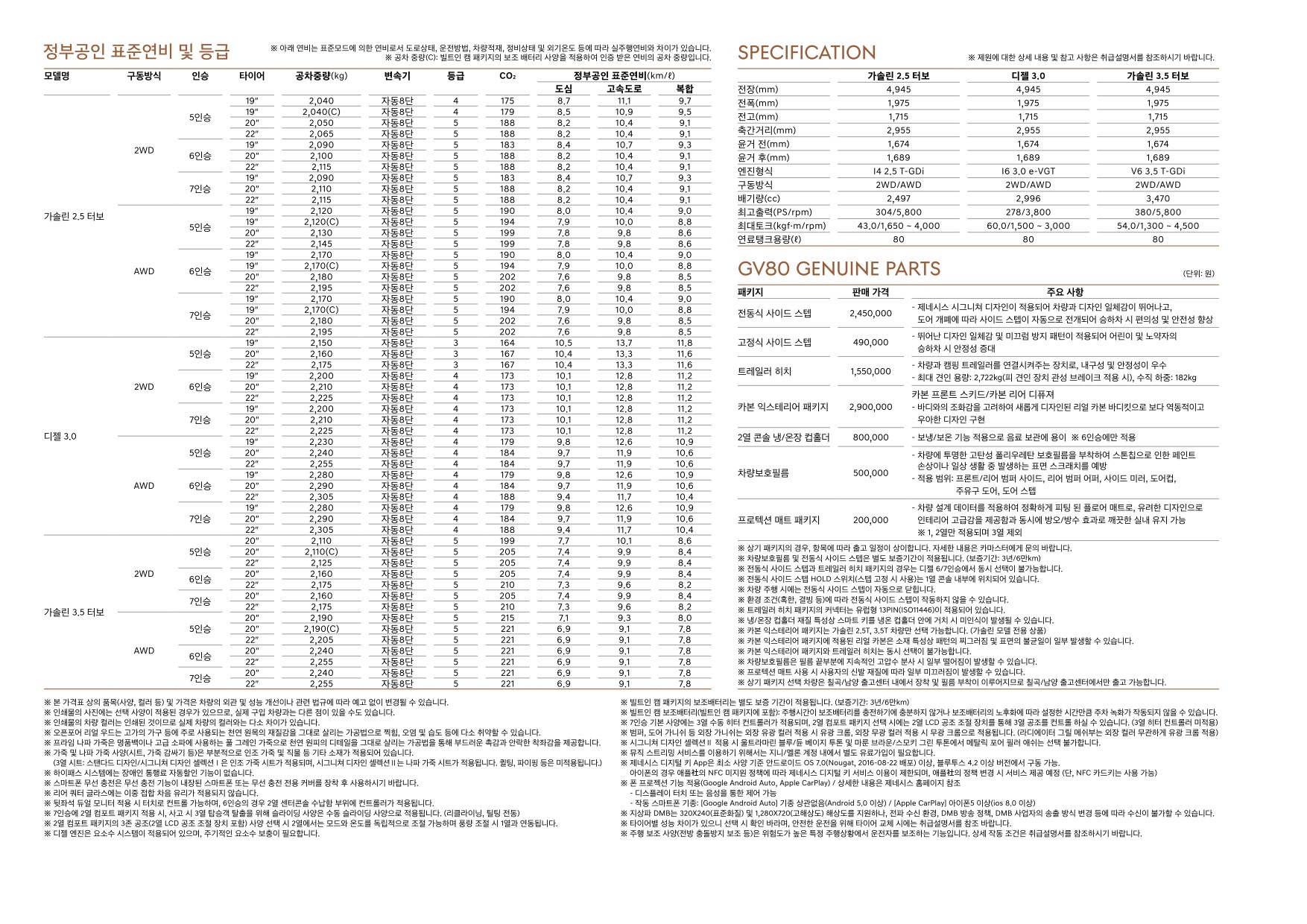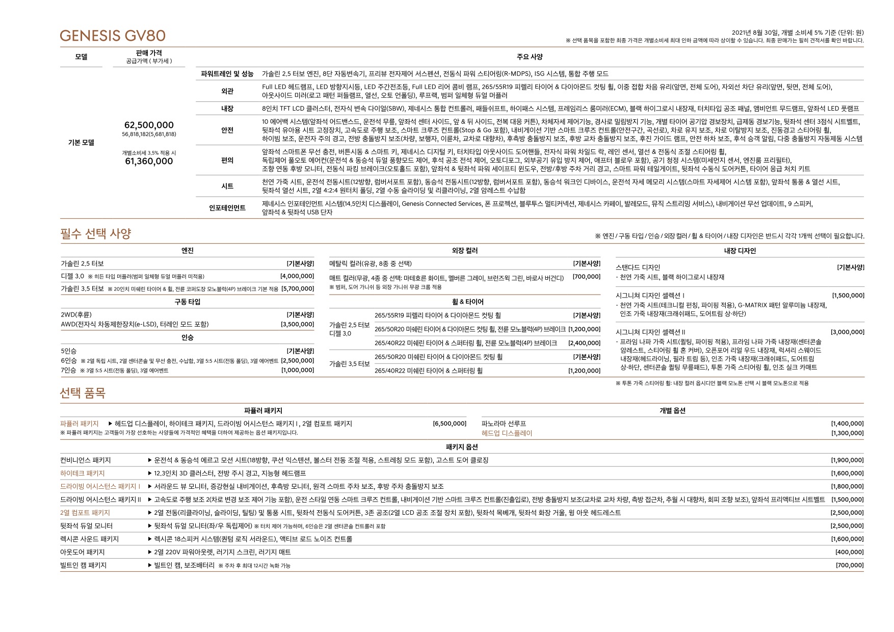 2021년 8월 GV80 신차가격표 (2022년형 제네시스GV80 6인승 모델 출시)