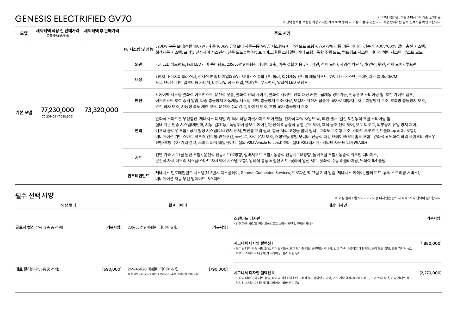 2023년 9월 GV70 일렉트릭 신차가격표 (2024년형 GV70 일렉트릭파이드)
