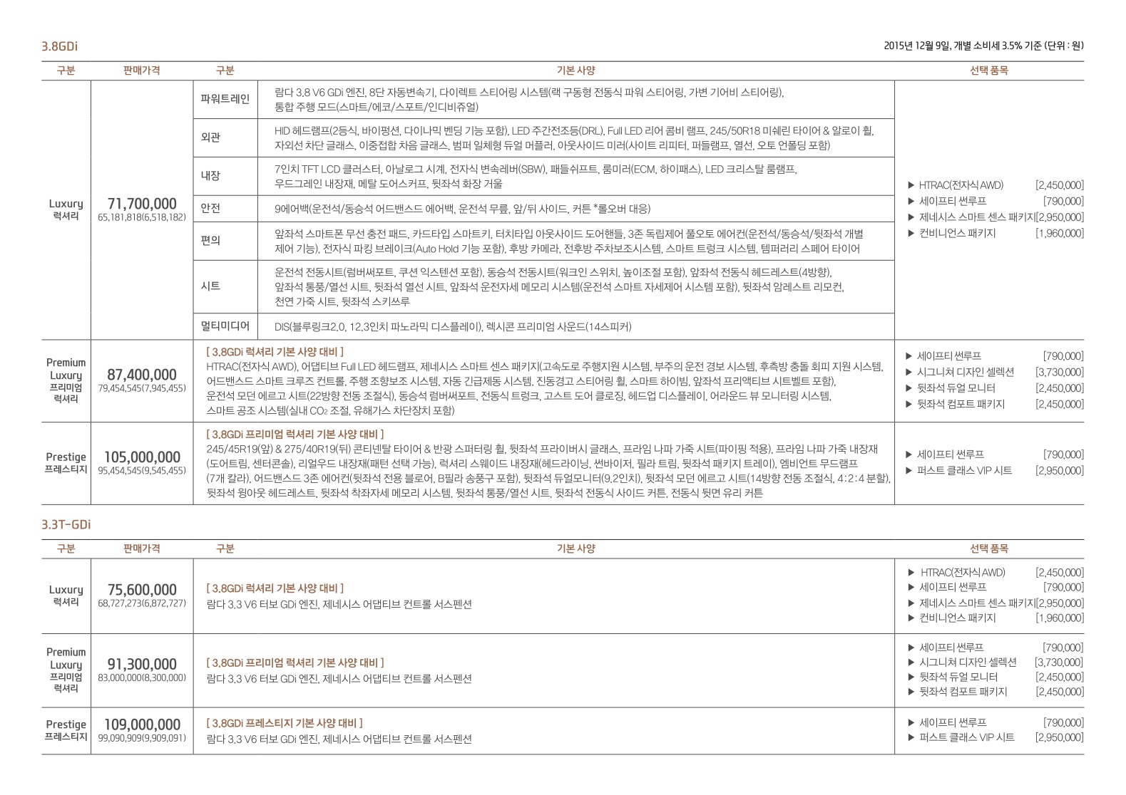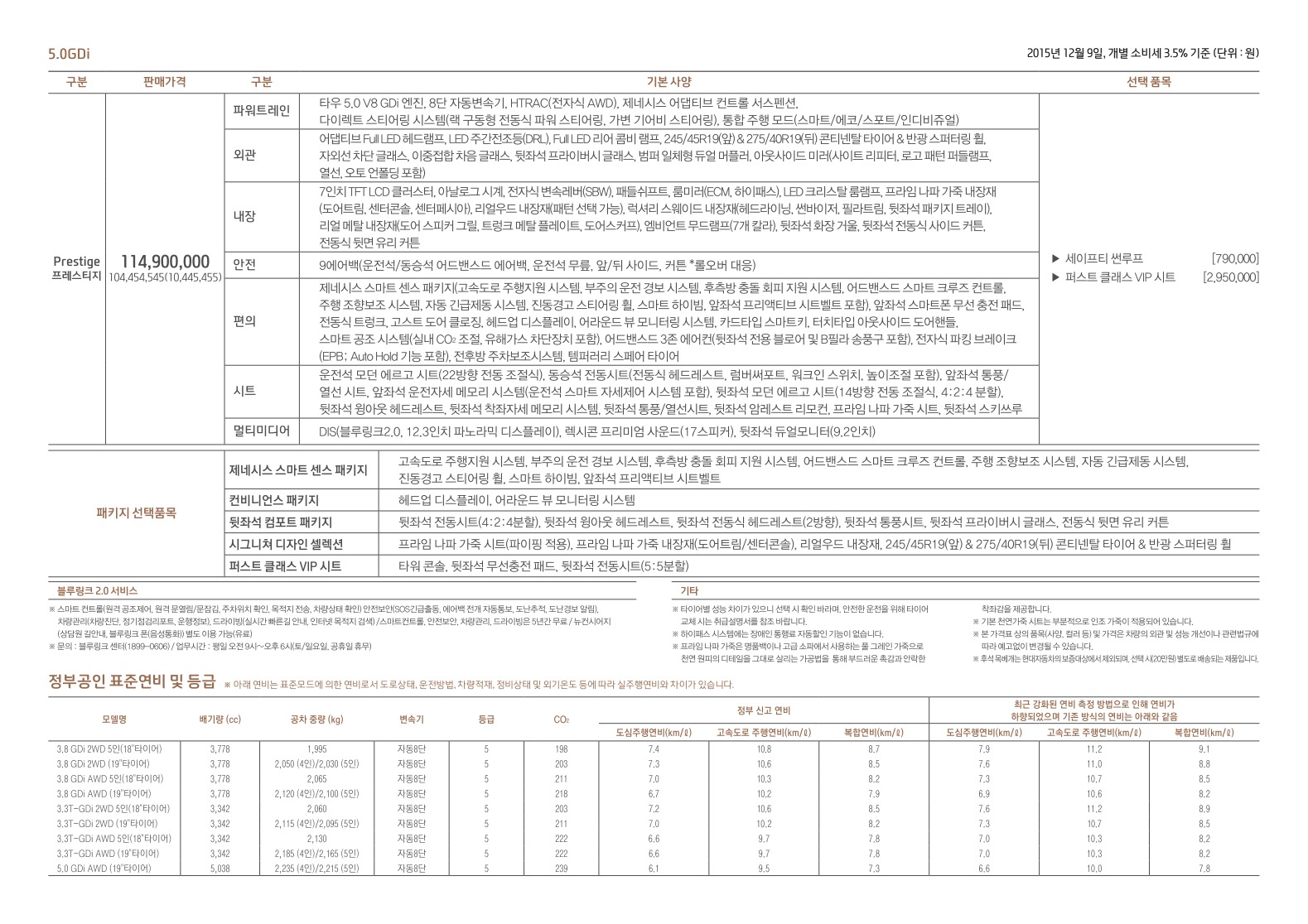 2015년 12월 제네시스 EQ900 신차가격표 (에쿠스 후속)