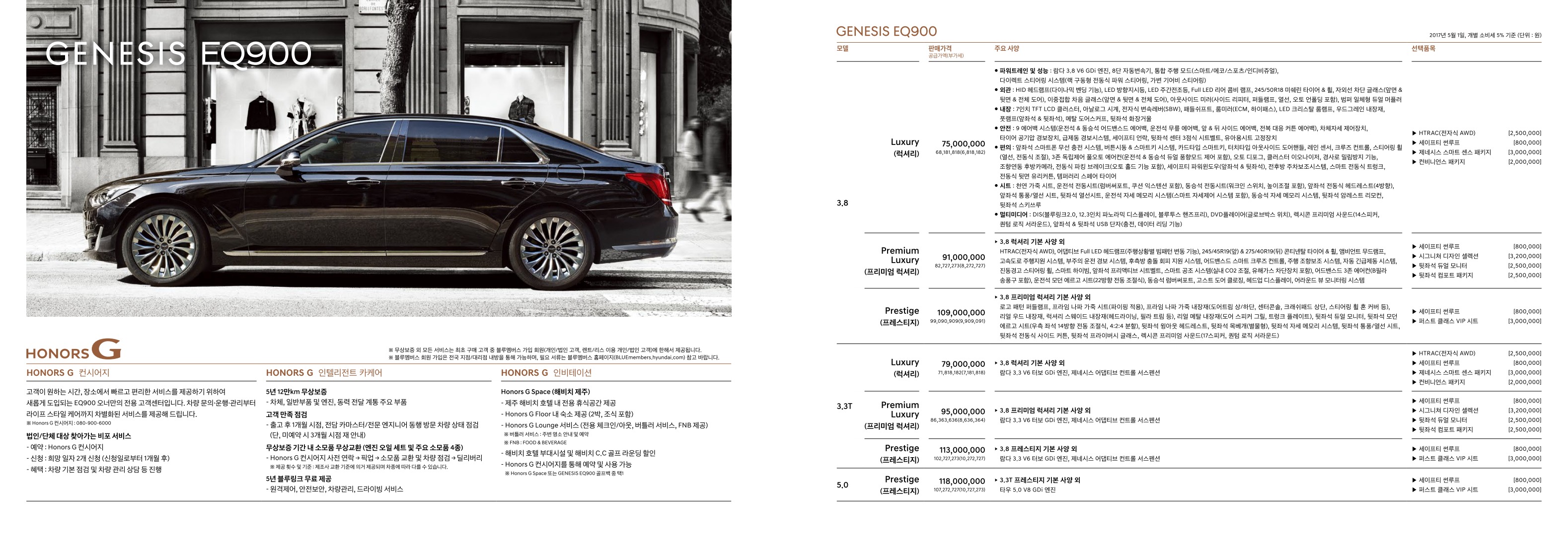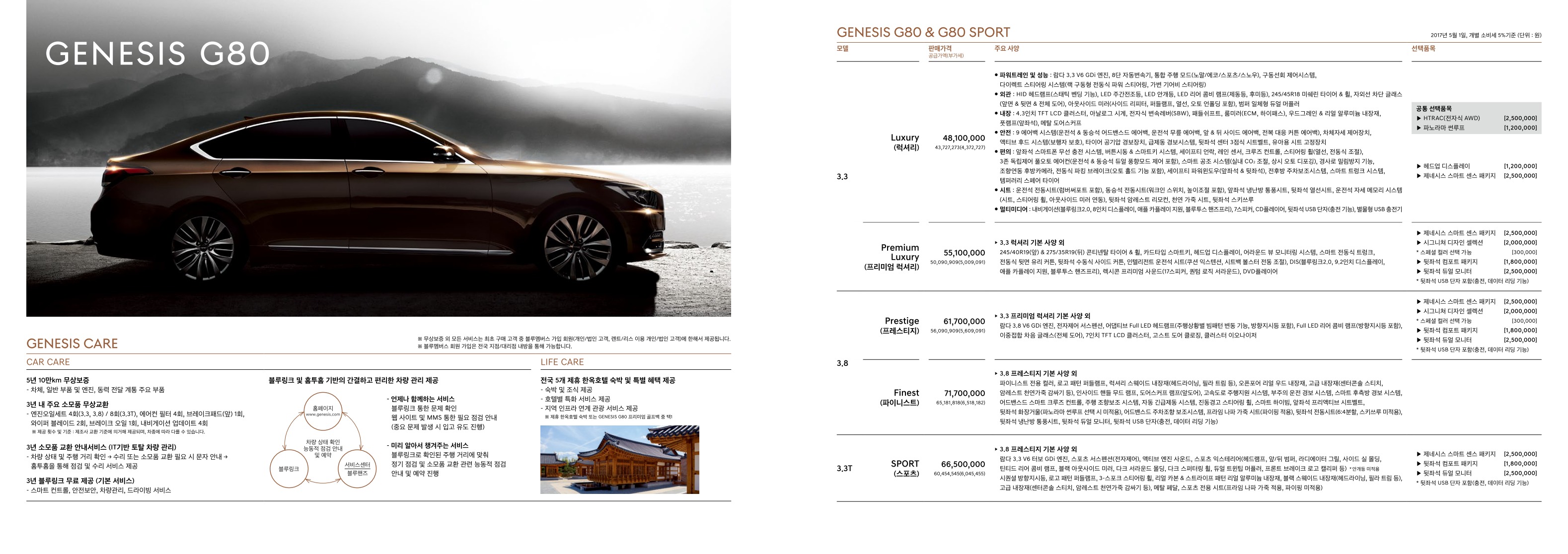 2017년 5월 제네시스 G80 신차가격표