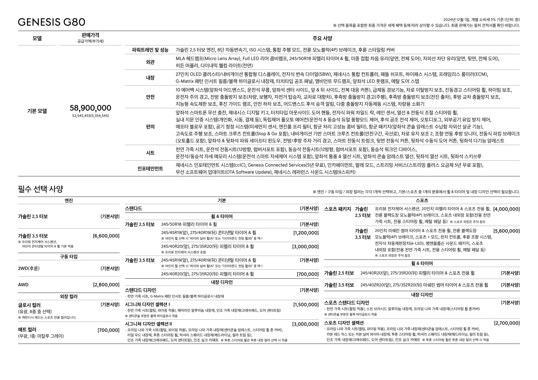 2024년 12월 제네시스 일렉트릭파이드 G80 신차가격표 (G80 전기차)