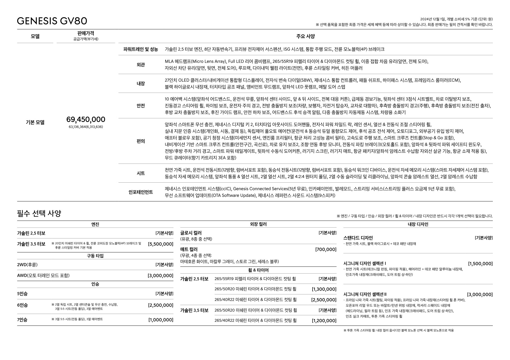 2024년 12월 제네시스 GV80 쿠페 신차가격표
