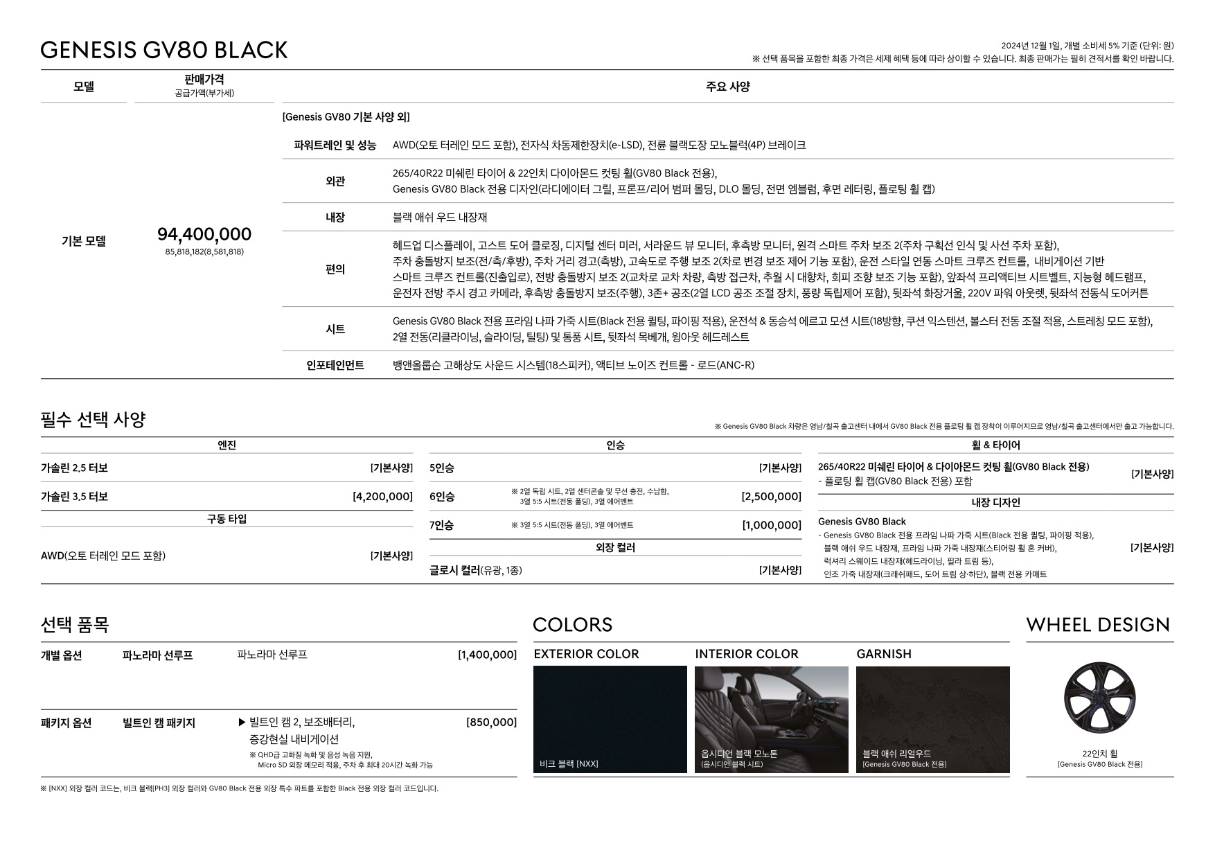 2024년 12월 제네시스 일렉트릭파이드 G80 신차가격표 (G80 전기차)
