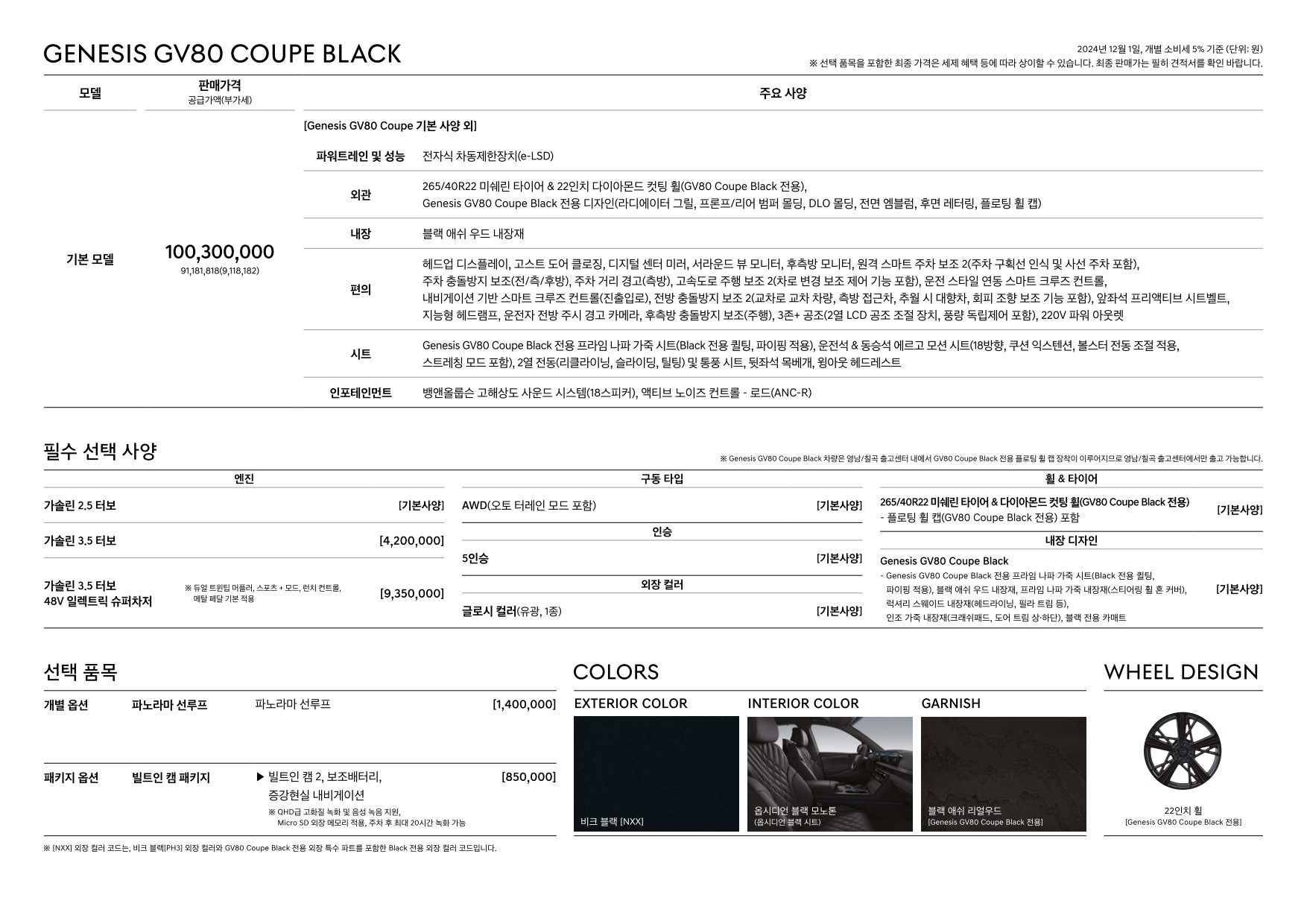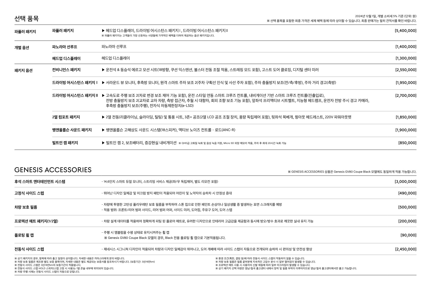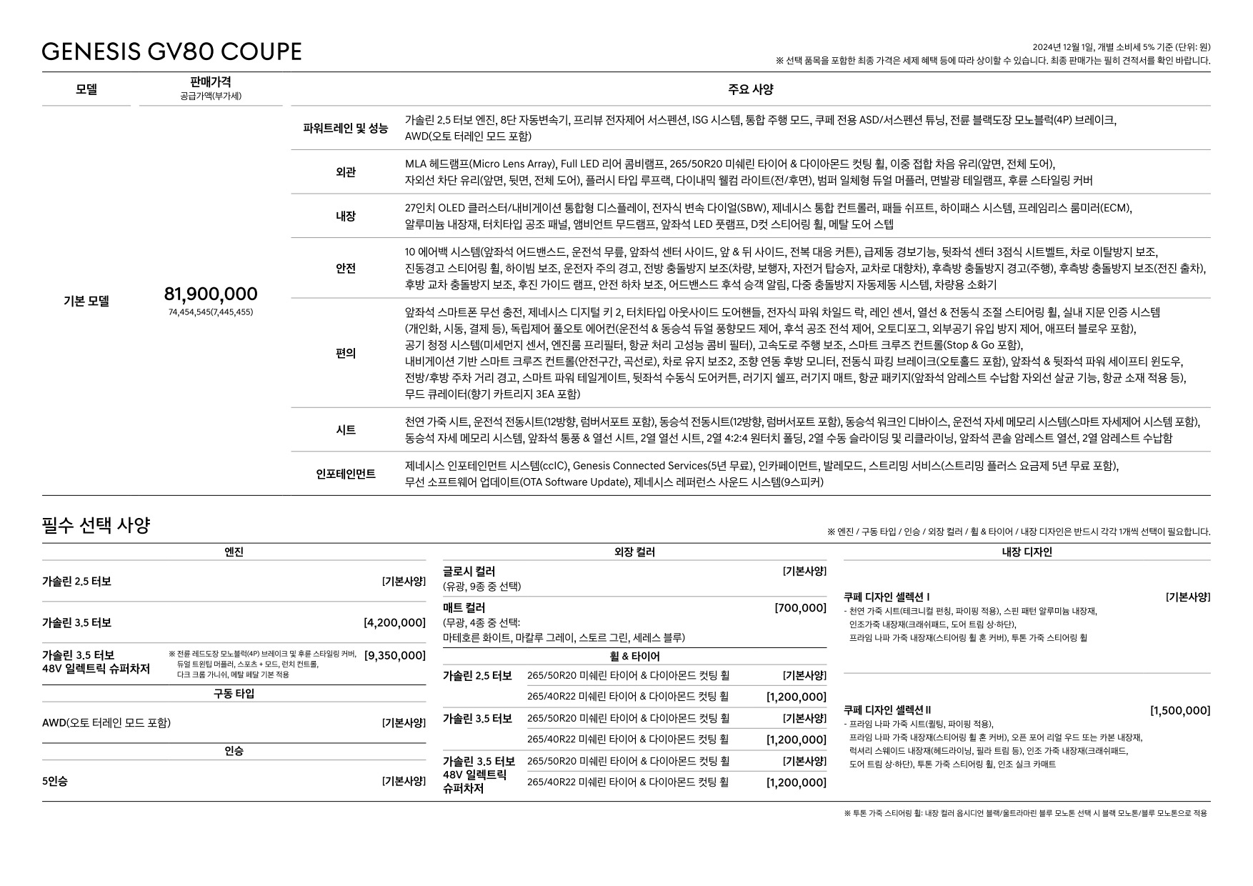 2024년 12월 제네시스 GV80 쿠페 신차가격표