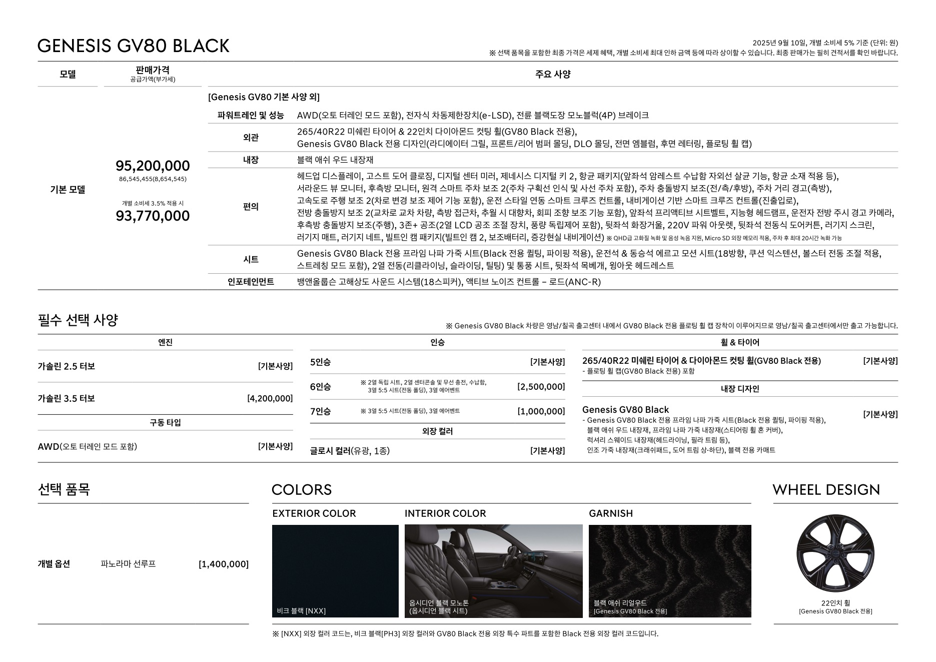 2025년 9월 제네시스 GV80 신차가격표 (2026년형 GV80 출시)