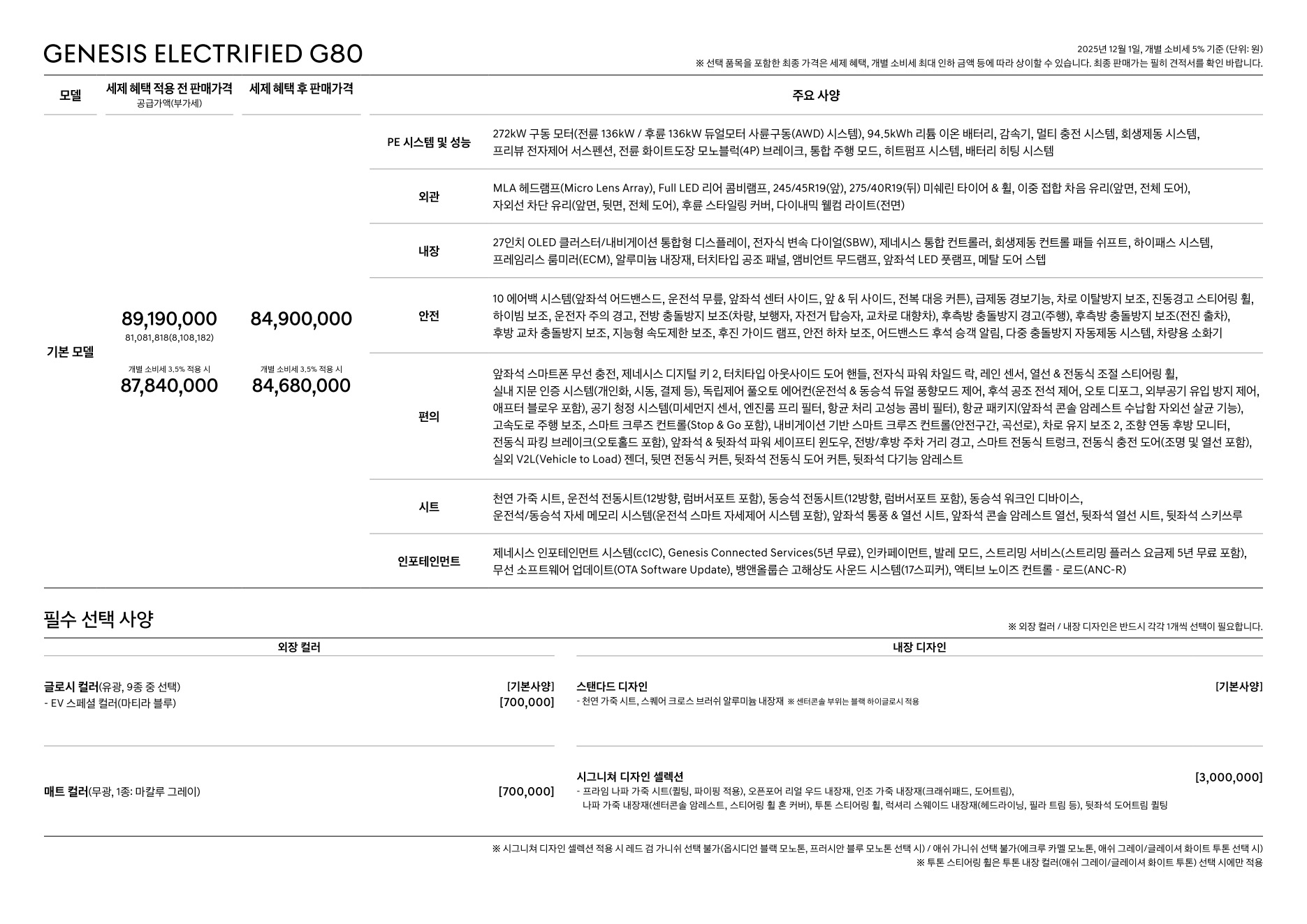 2025년 12월 일렉트릭파이드 G80 신차가격표 (G80전기차)
