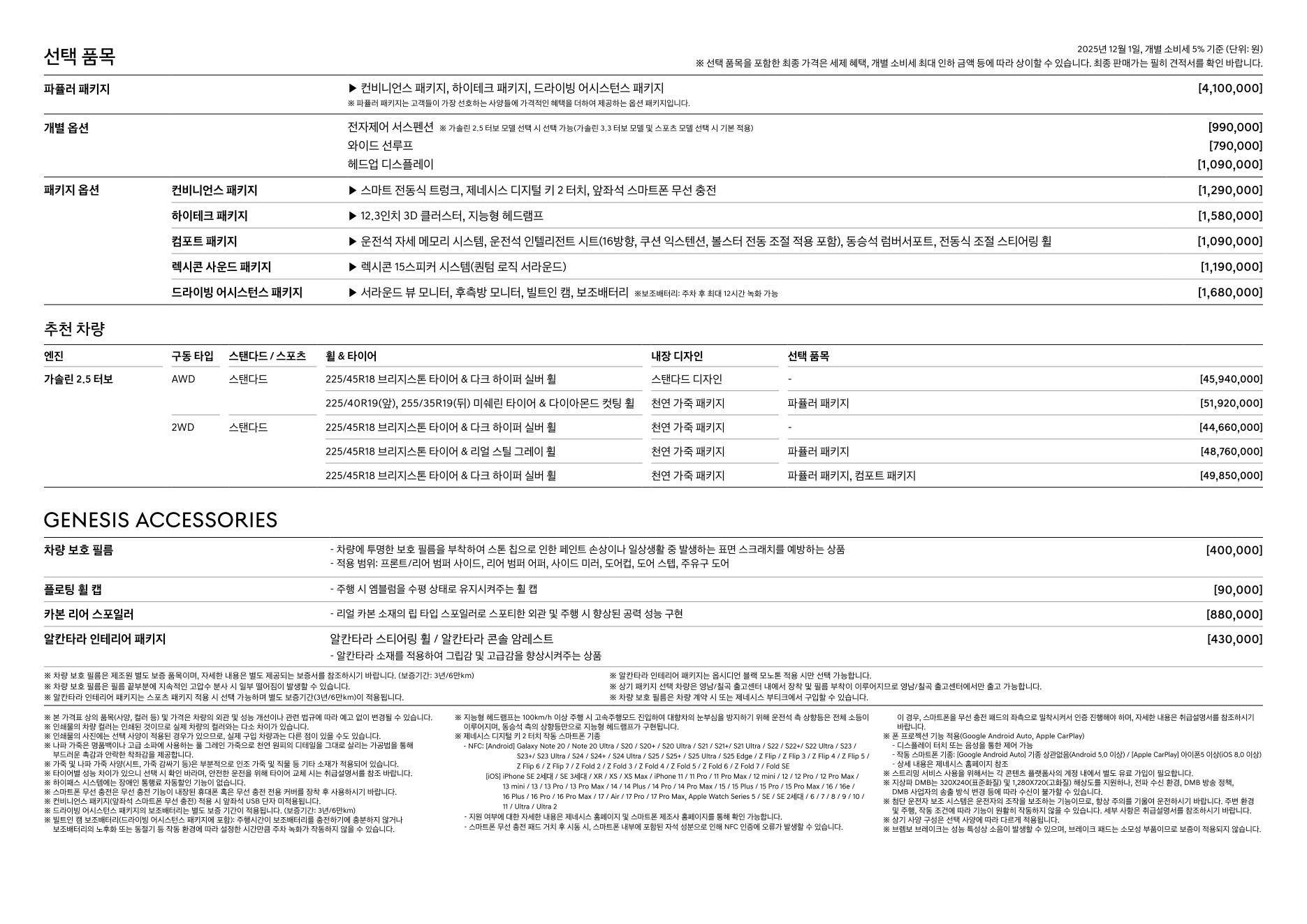 2025년 12월 G70 신차가격표