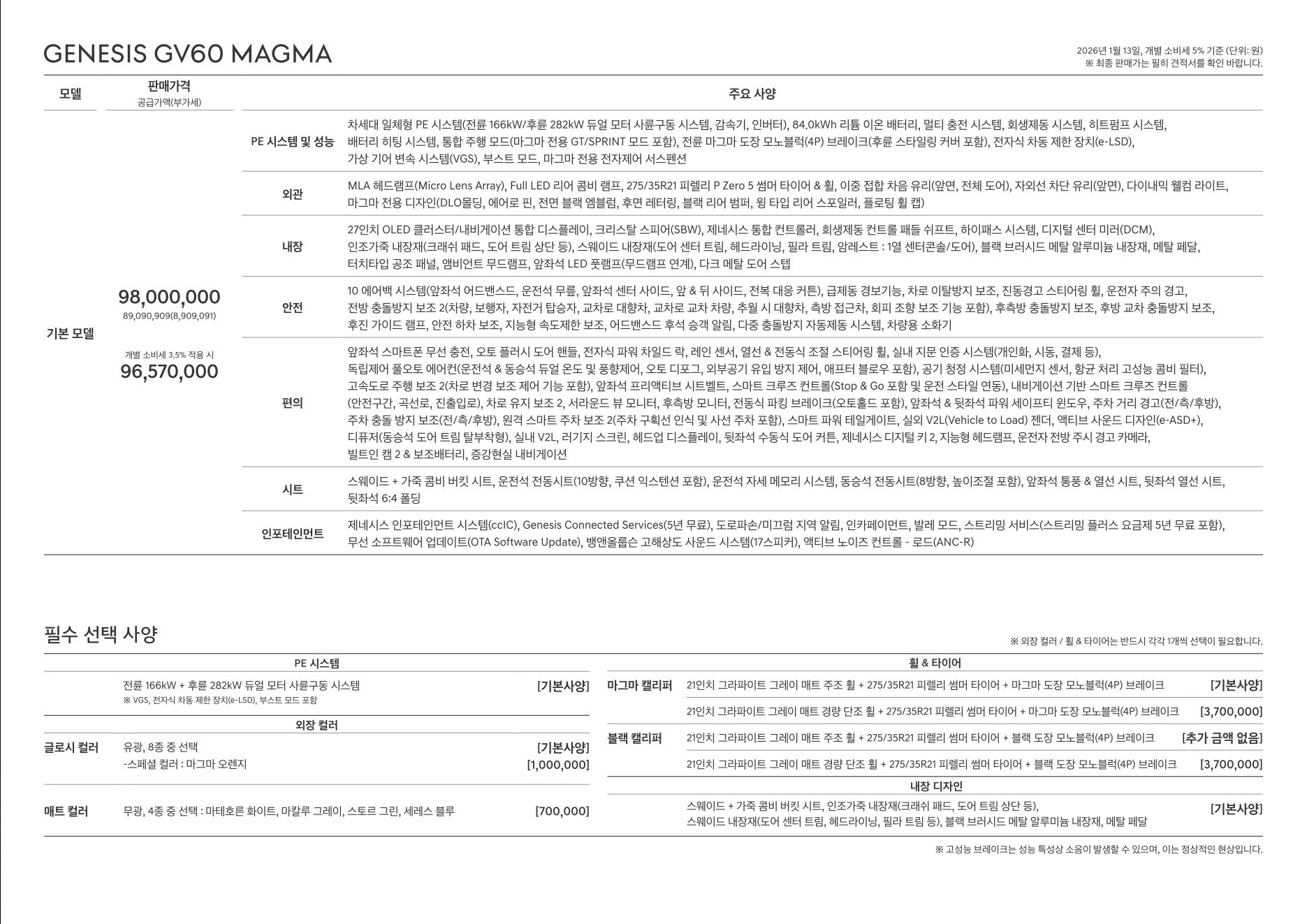 2026년 1월 GV60 마그마 신차가격표 (GV60 마그마 출시)