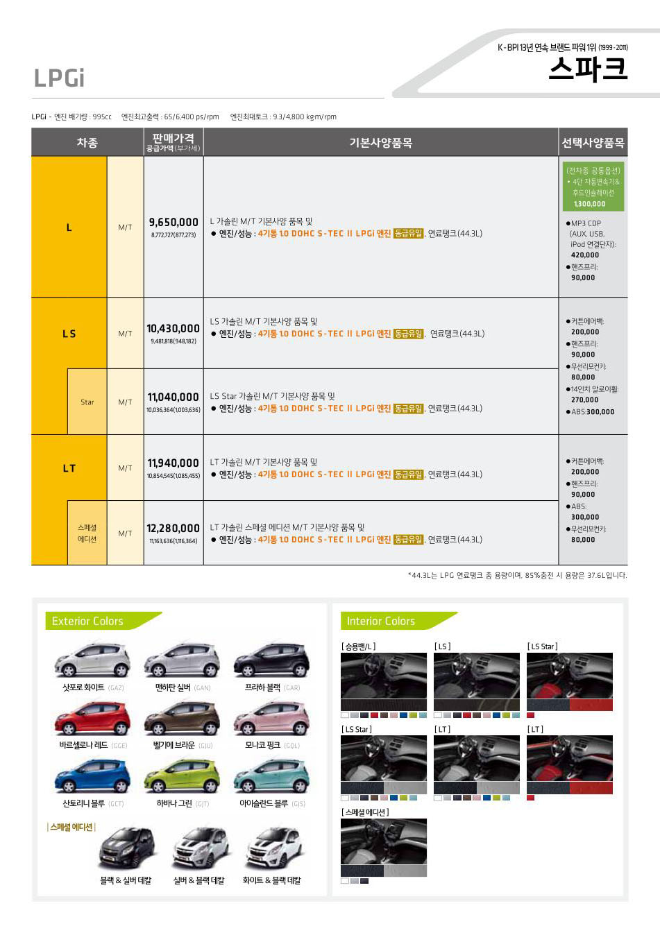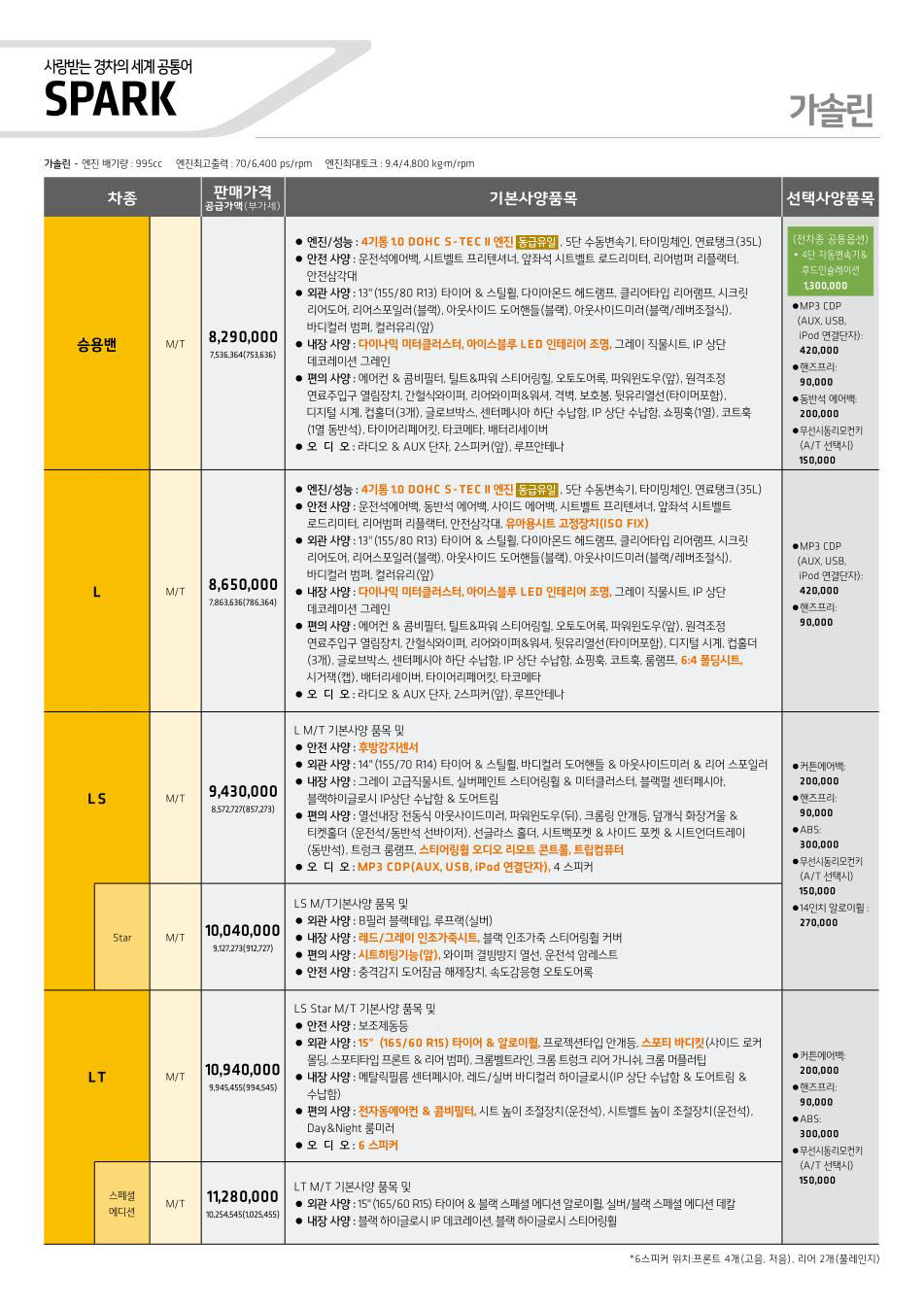 2011년 7월 스파크 신차가격표 (트랜스포머에디션 추가)