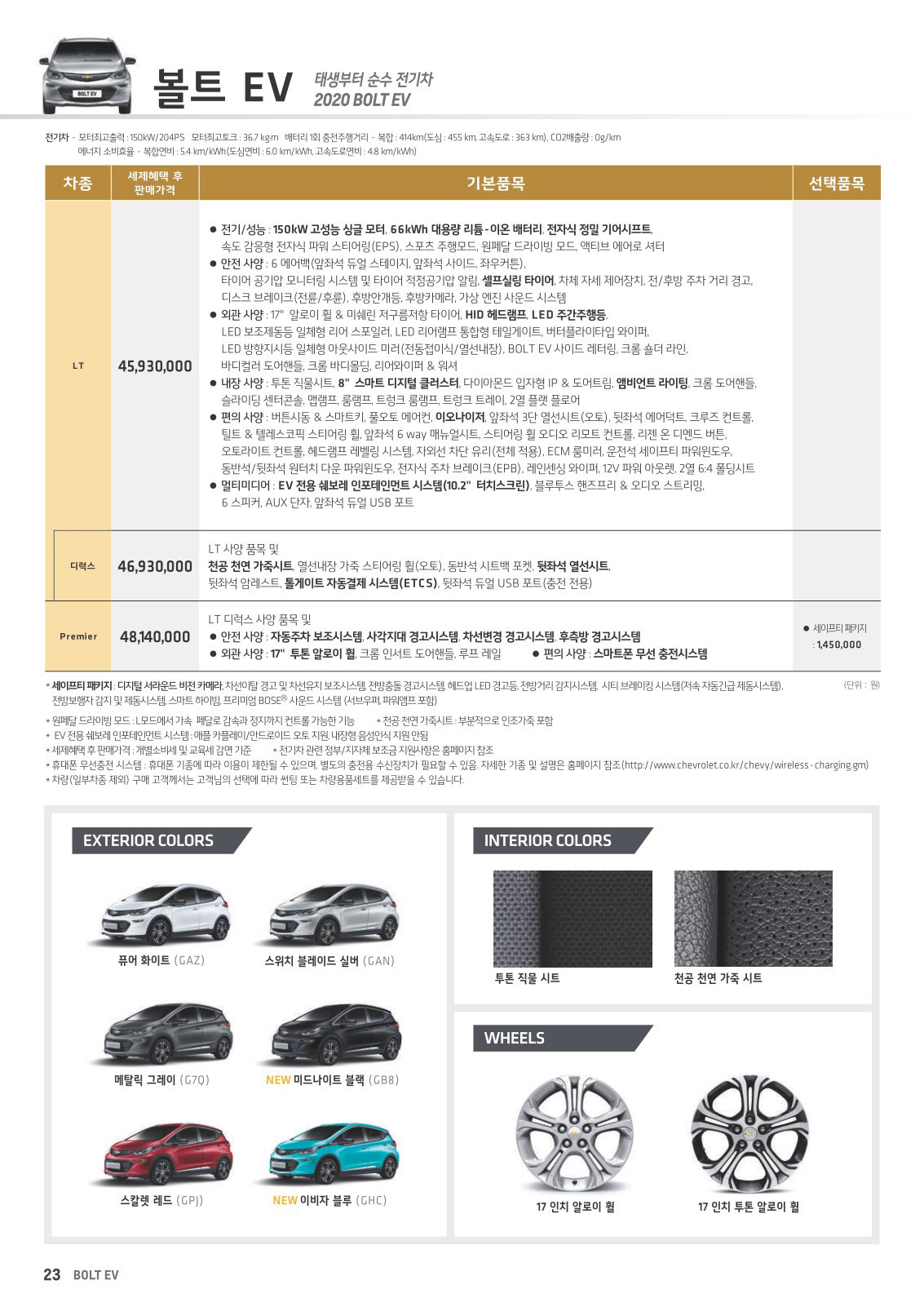 2020년 6월 볼트ev 신차가격표 (2020년형 볼트ev 출시)