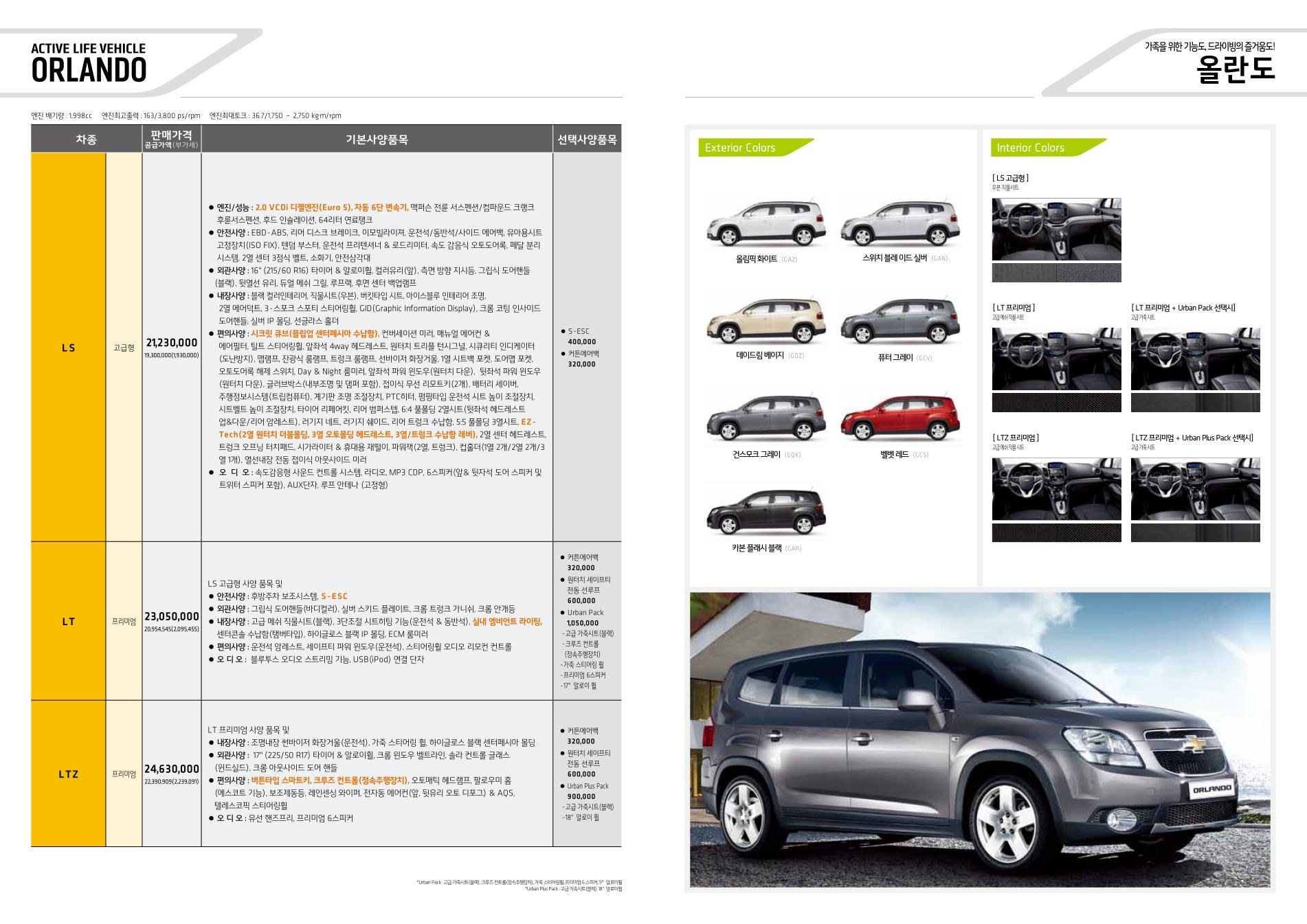 2011년 7월 올란도 신차가격표 (LPG 출시)