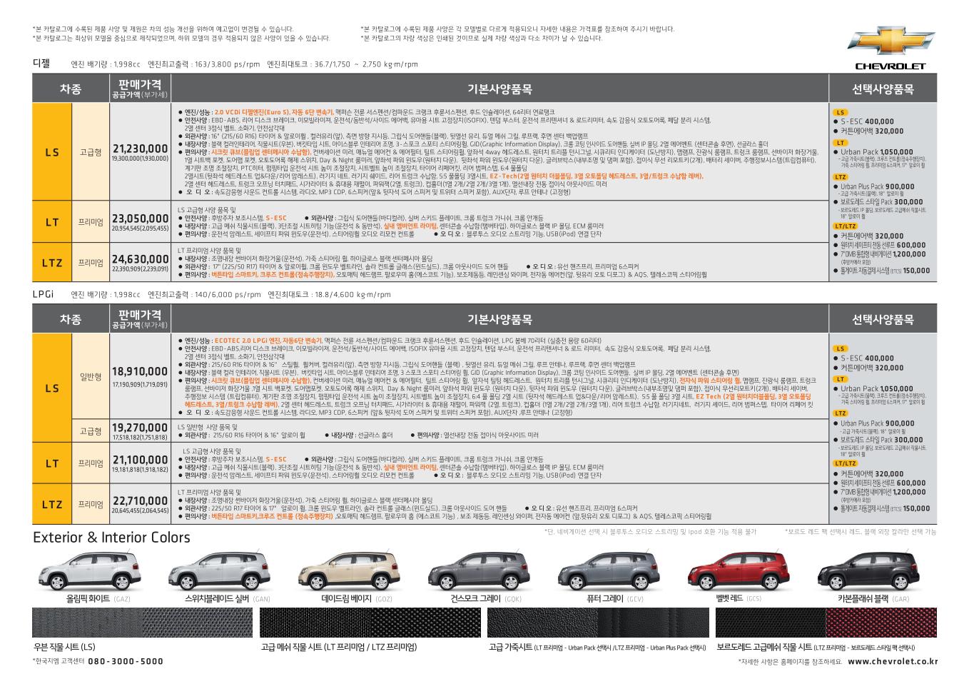 2011년 7월 올란도 신차가격표 (LPG 출시)