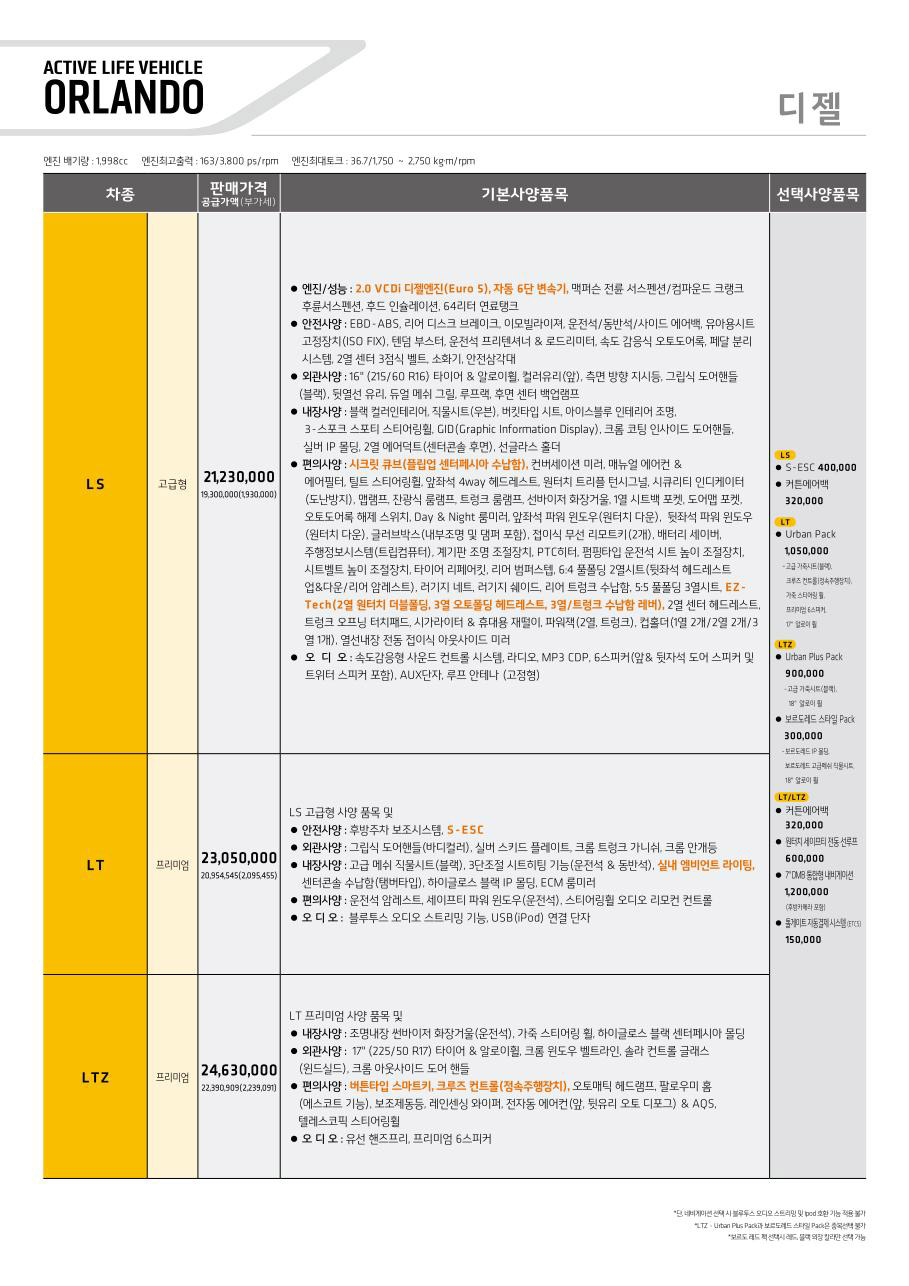 ※ 본 가격표의 모든 저작권은 해당 차량 제조사에 있습니다.