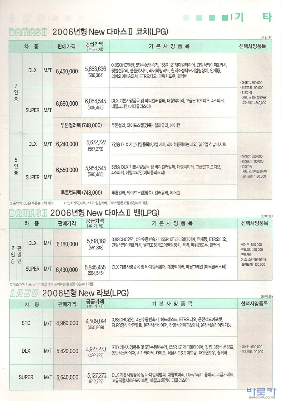 2006년 1월 뉴 다마스2 & 뉴 라보 신차가격표