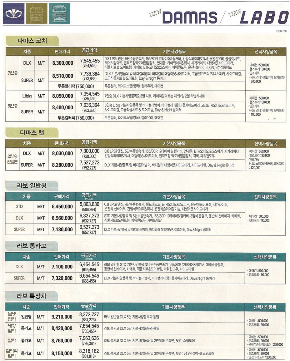 2008년 11월 뉴 다마스 & 뉴 라보 신차가격표