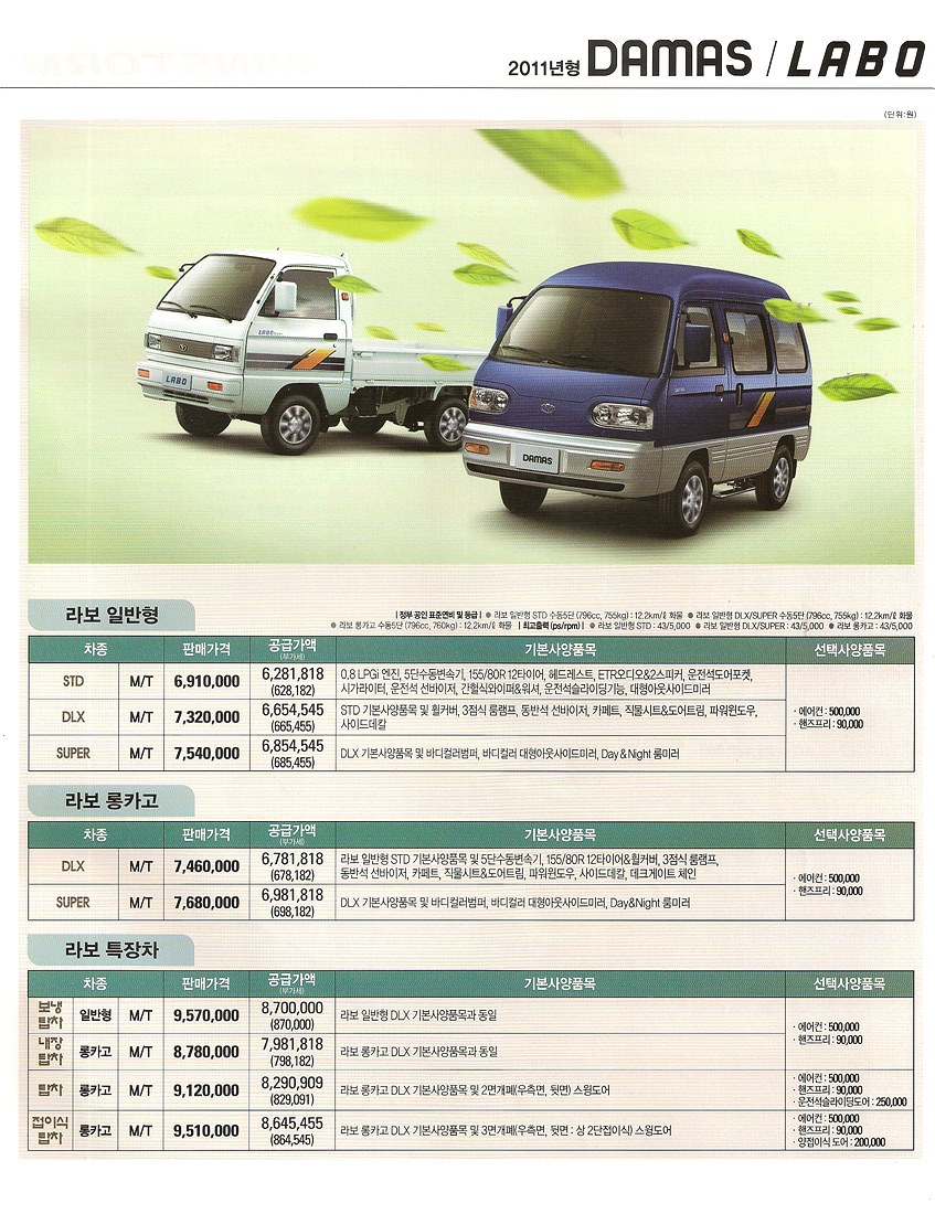 2010년 3월 뉴 다마스 & 뉴 라보 신차가격표