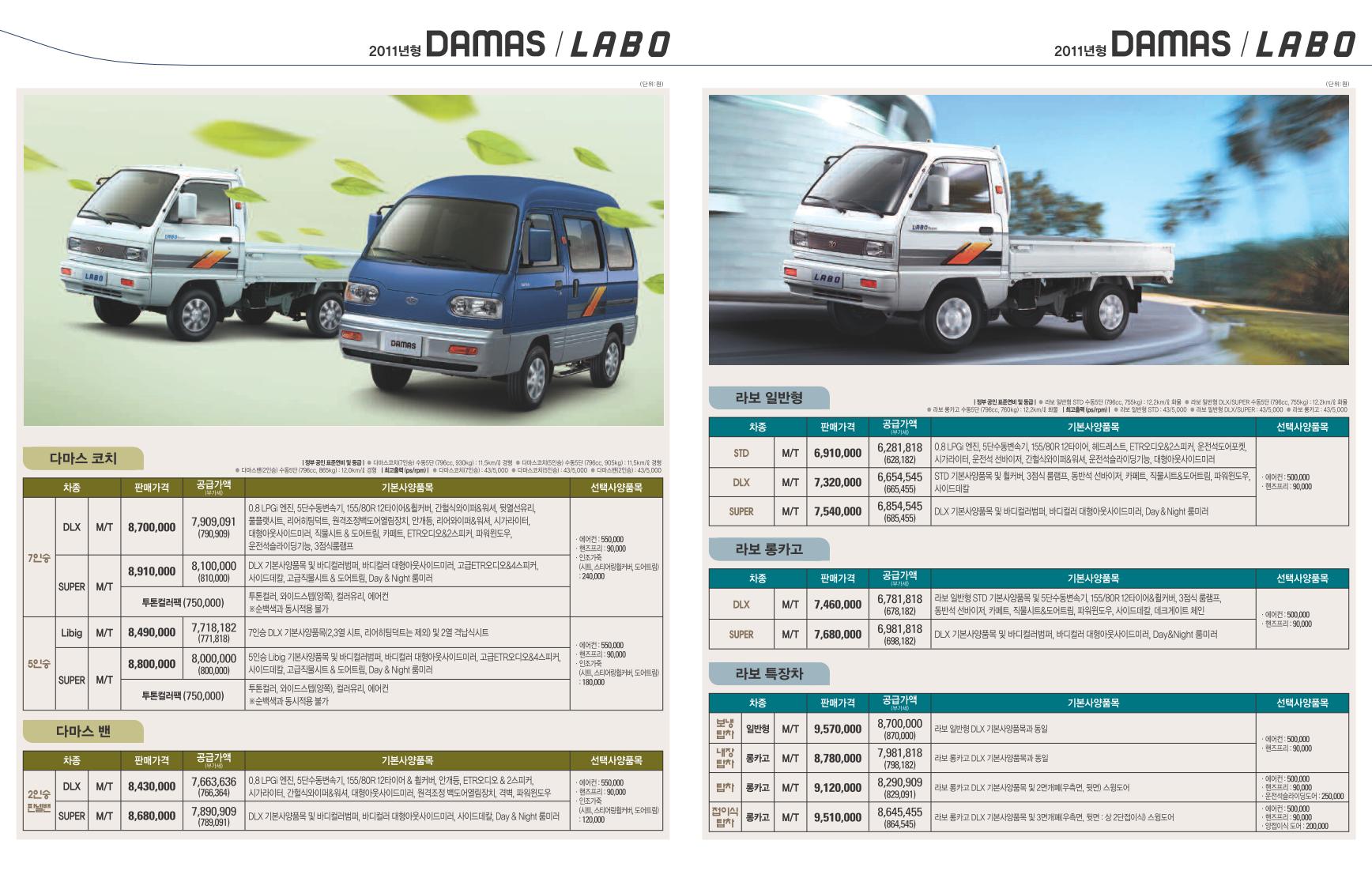 2011년 3월 다마스 & 라보 신차가격표