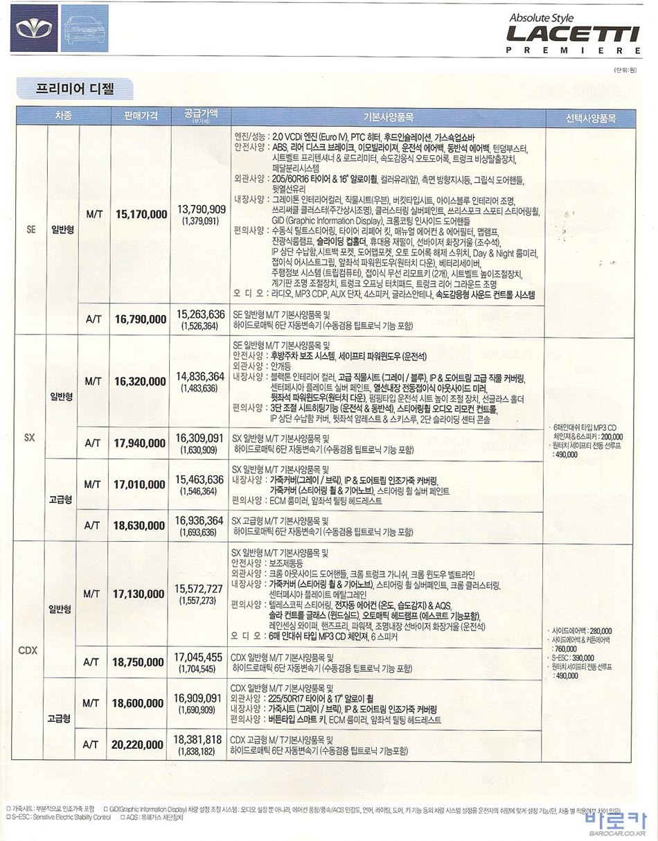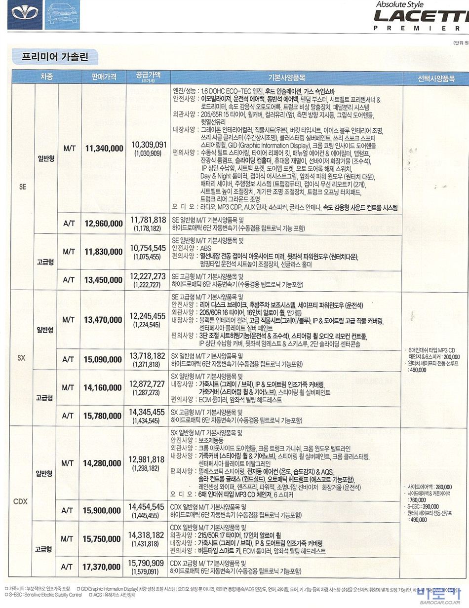 2008년 11월 라세티EX (뉴라세티 해치백) 신차가격표