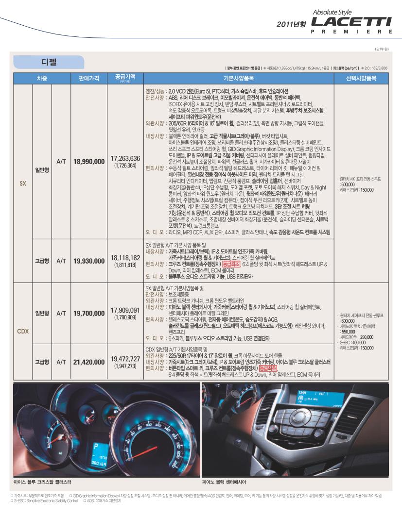 2010년 11월 라세티 프리미어 디젤 신차가격표