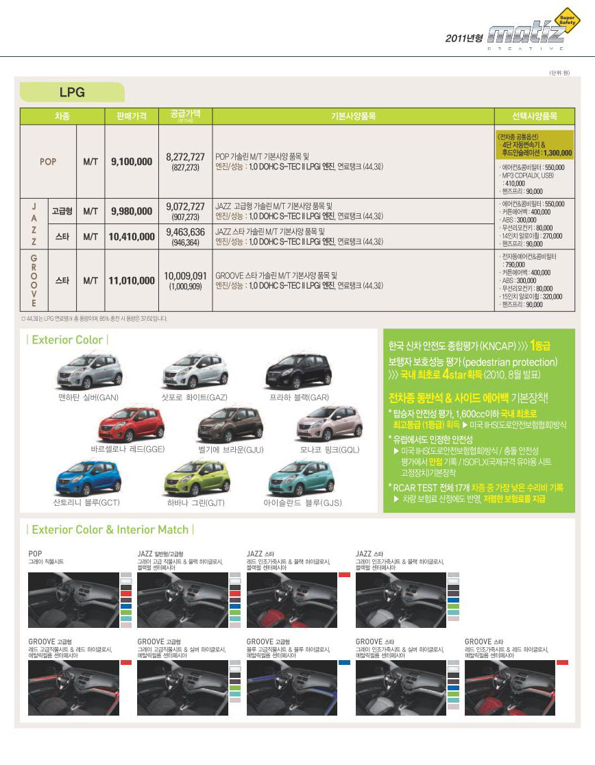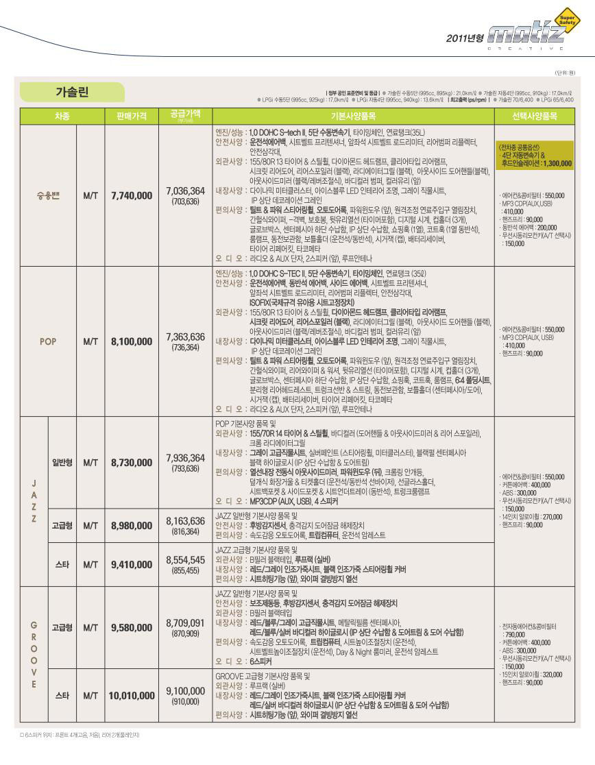 2010년 12월 마티즈 크리에이티브 신차가격표