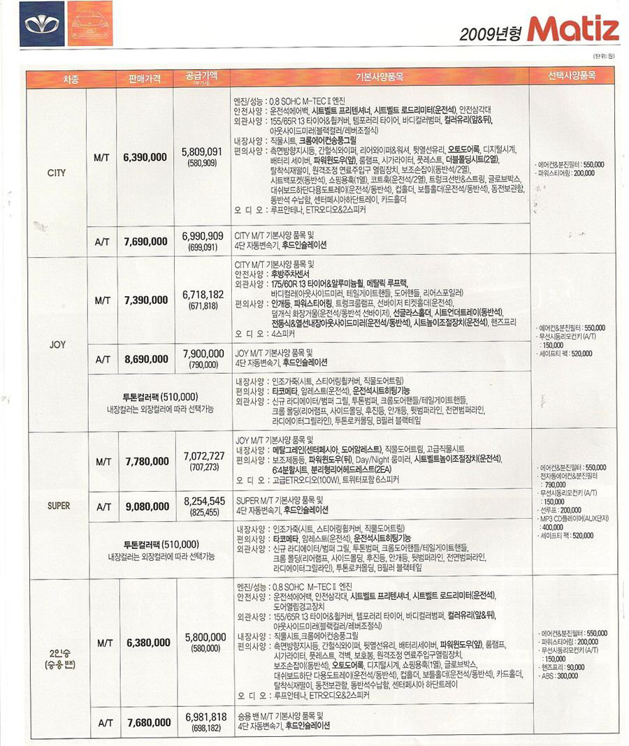 ※ 본 가격표의 모든 저작권은 해당 차량 제조사에 있습니다.