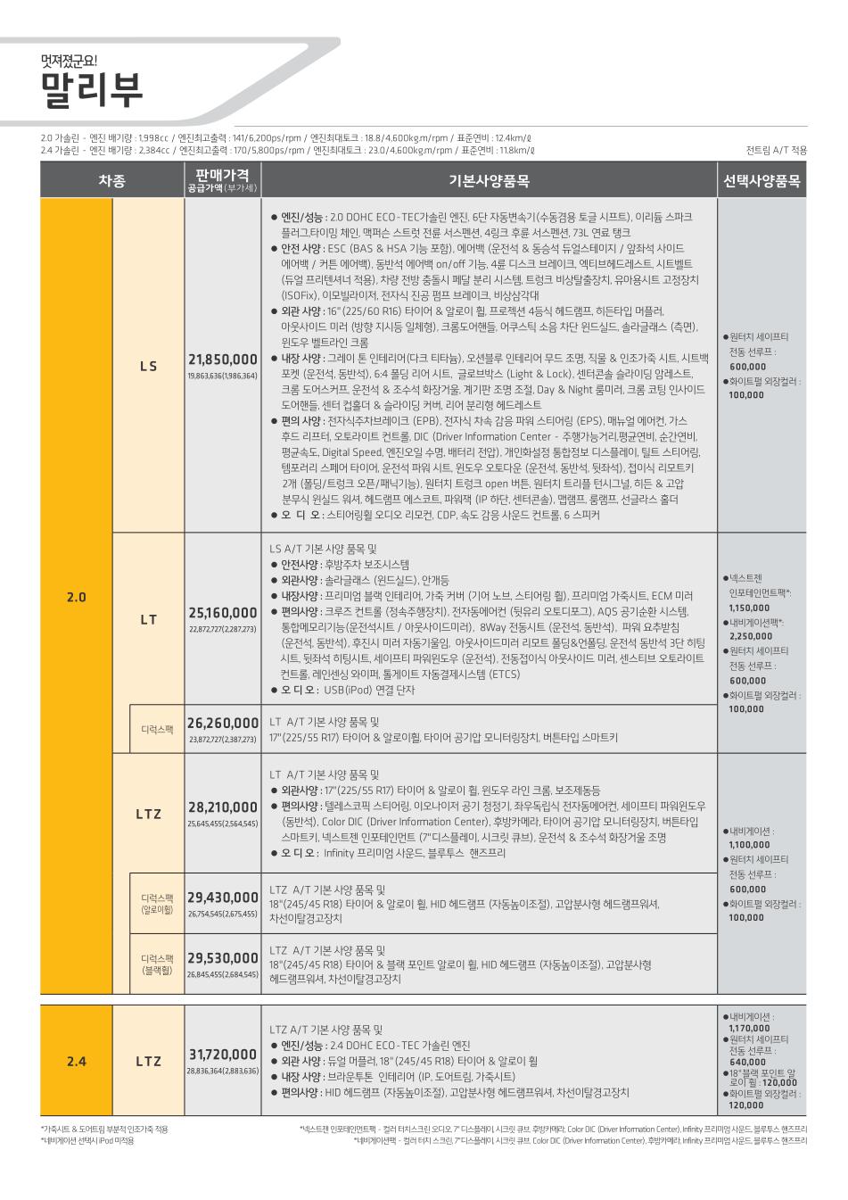 ※ 본 가격표의 모든 저작권은 해당 차량 제조사에 있습니다.