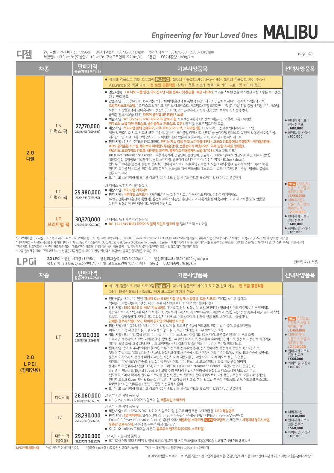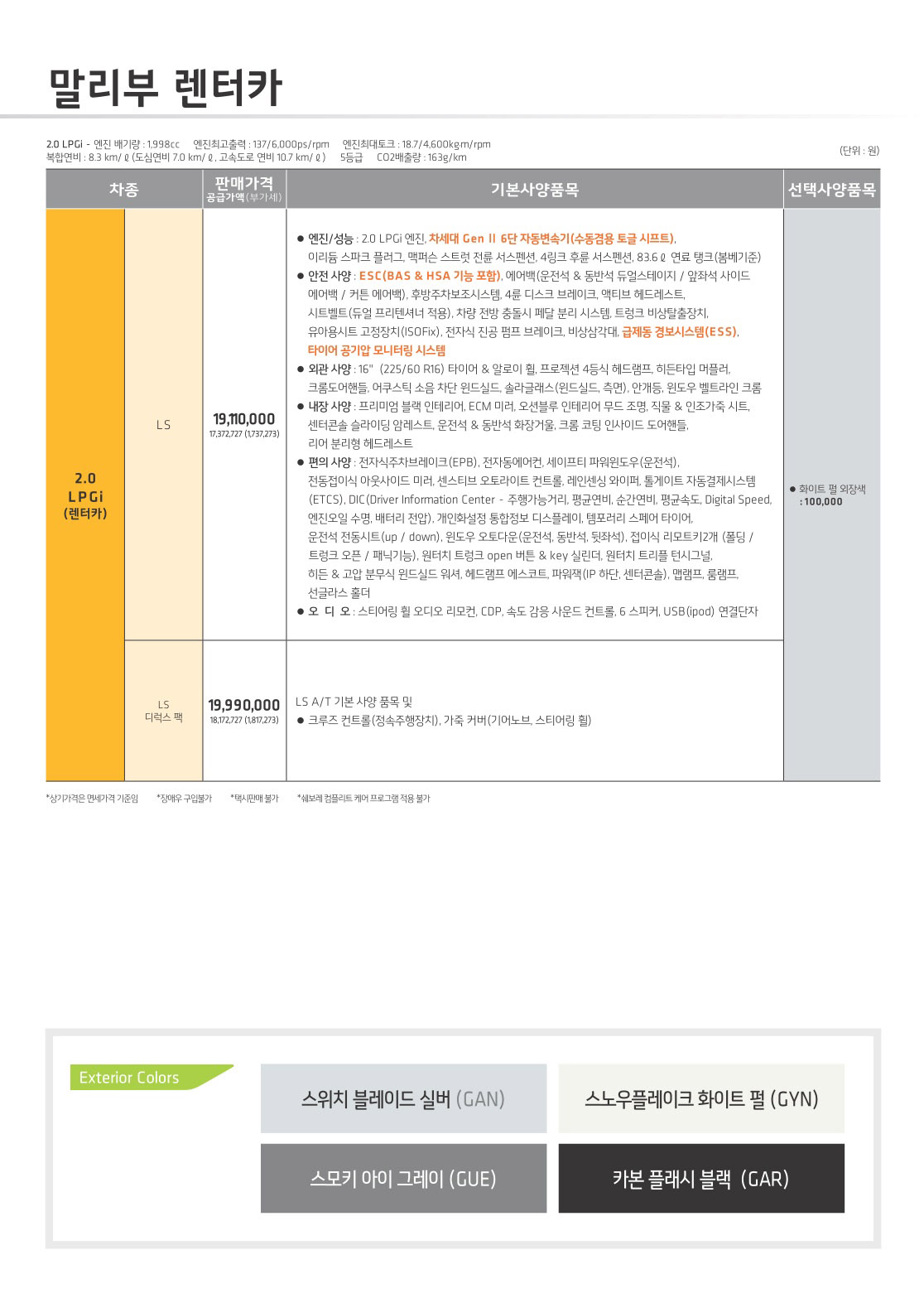 ※ 본 가격표의 모든 저작권은 해당 차량 제조사에 있습니다.