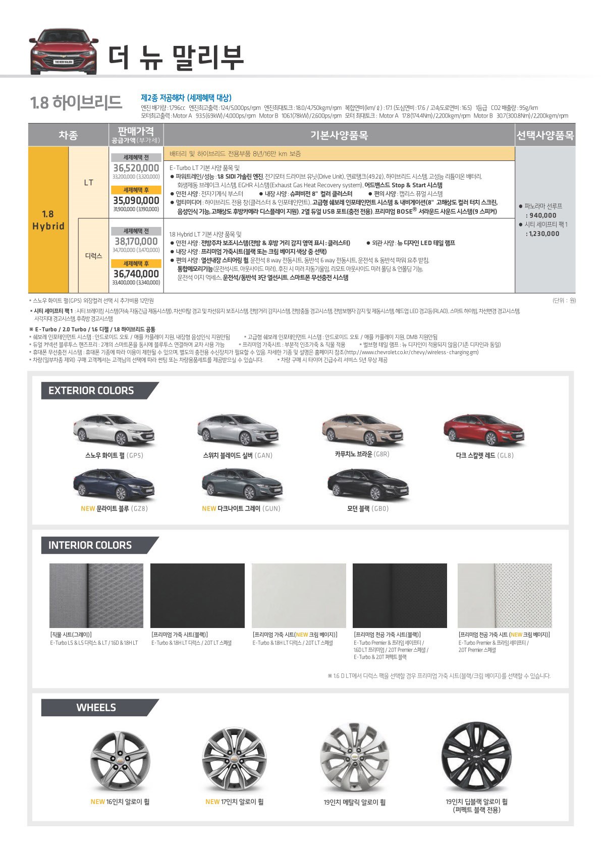 2019년 4월 말리부 가격표 (하이브리드 출시)