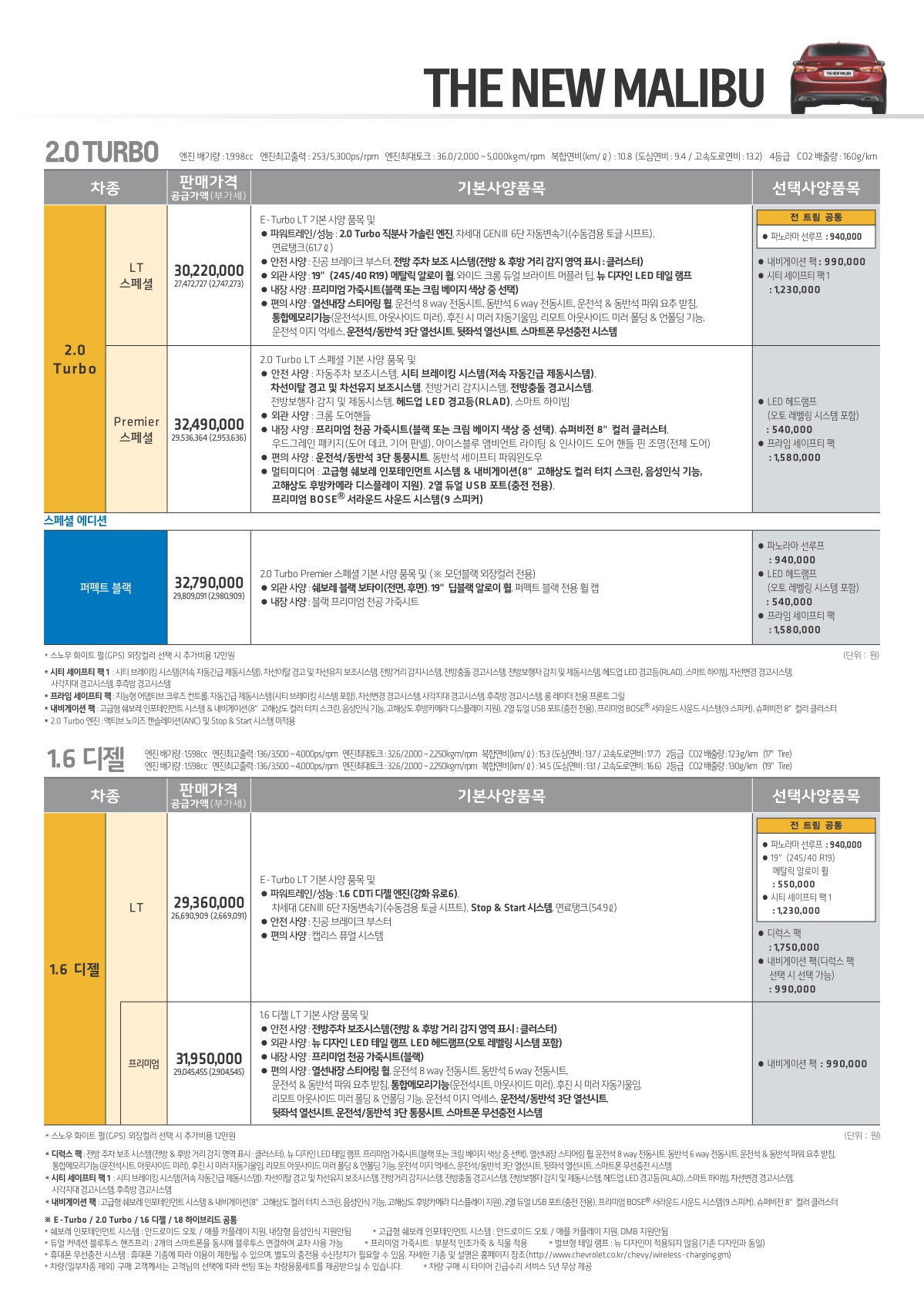 2019년 4월 말리부 가격표 (하이브리드 출시)