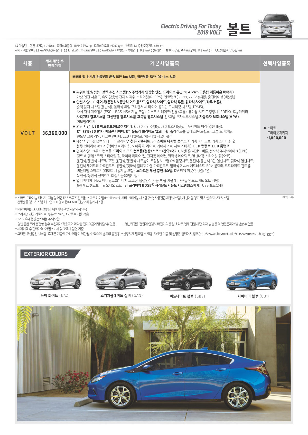 2018년 12월 볼트 & 볼트EV 가격표