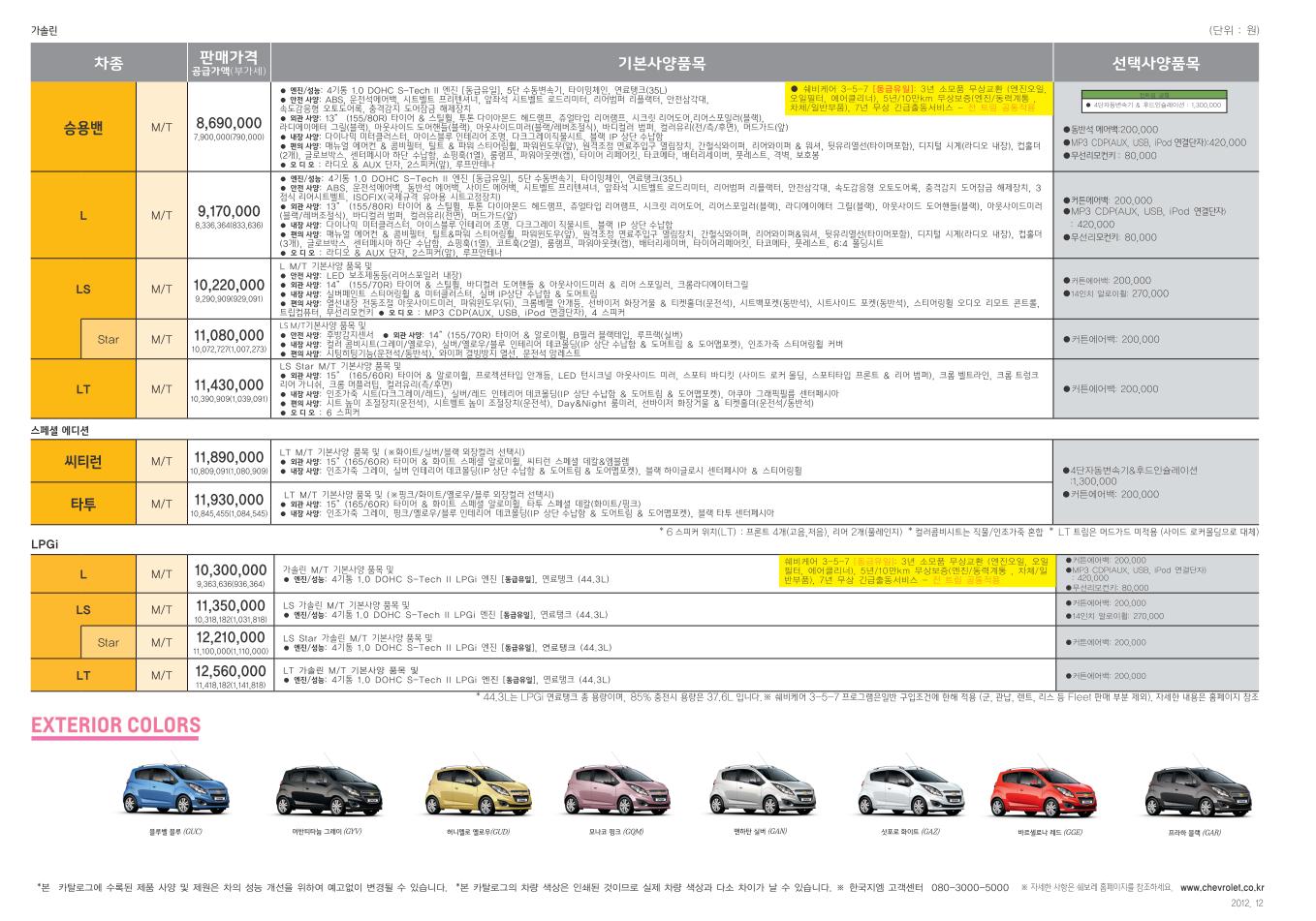 2012년 12월 스파크 신차가격표 (2013년형 출시)