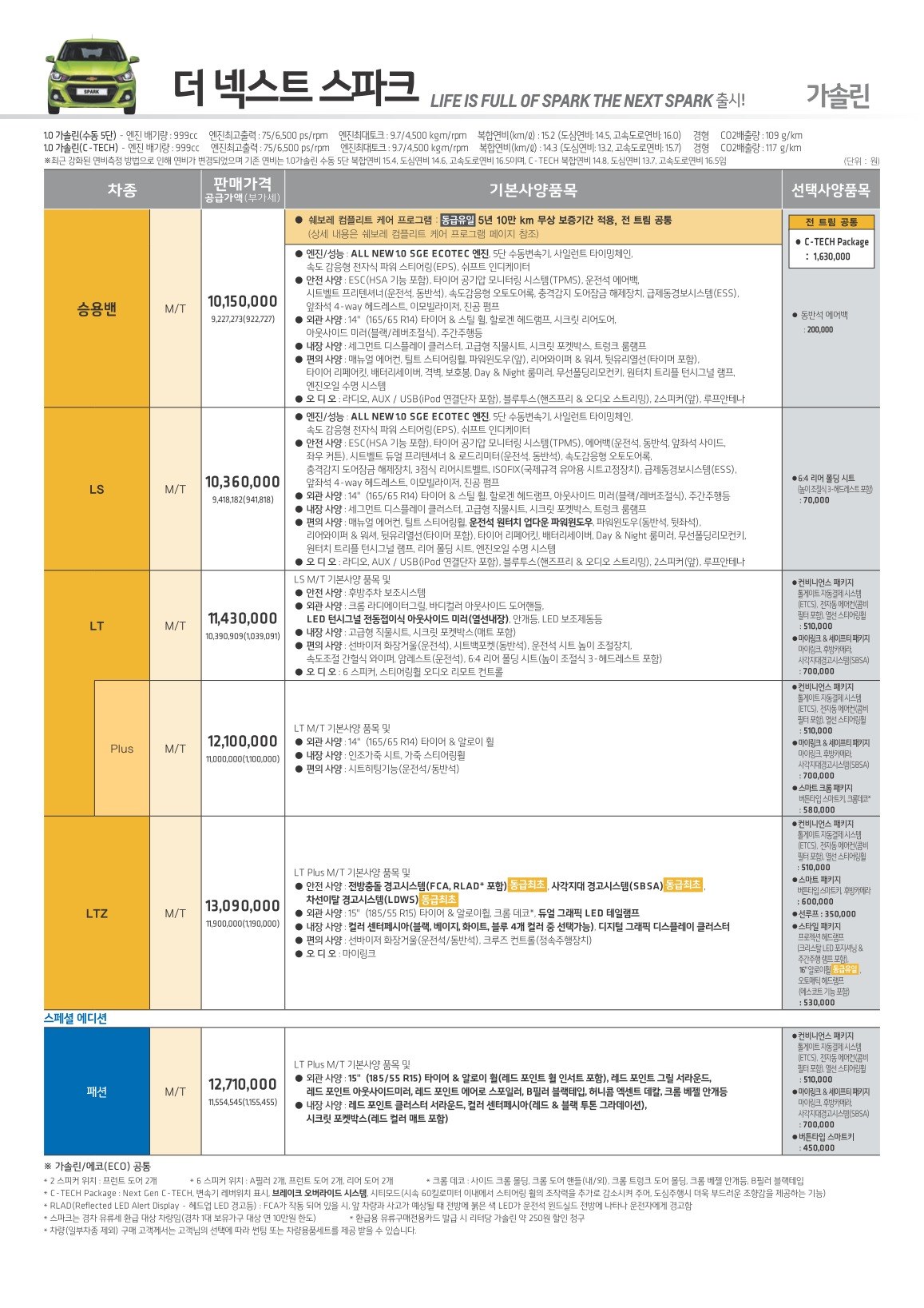 2015년 8월 더 넥스트 스파크 신차가격표