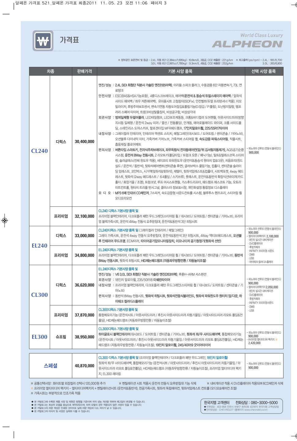 2011년 10월 알페온 신차가격표 (2012년형 각자)