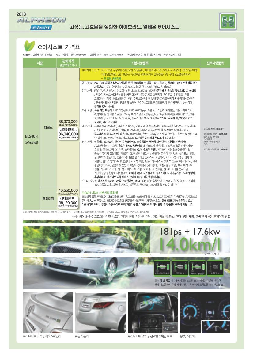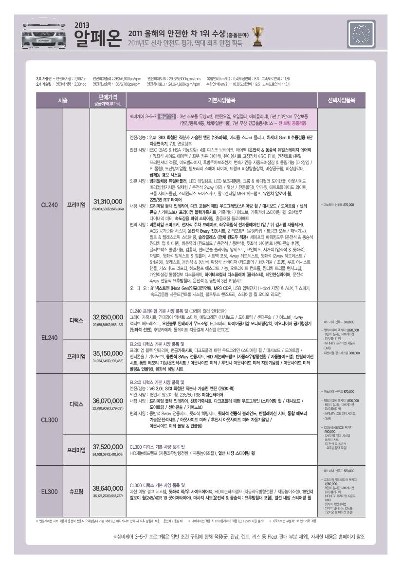 2013년 1월 알페온 신차가격표