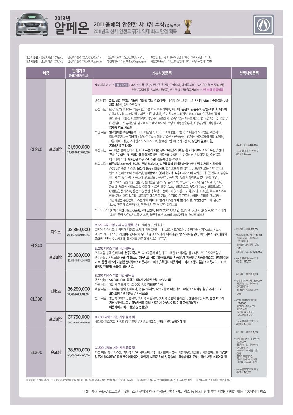 ※ 본 가격표의 모든 저작권은 해당 차량 제조사에 있습니다.