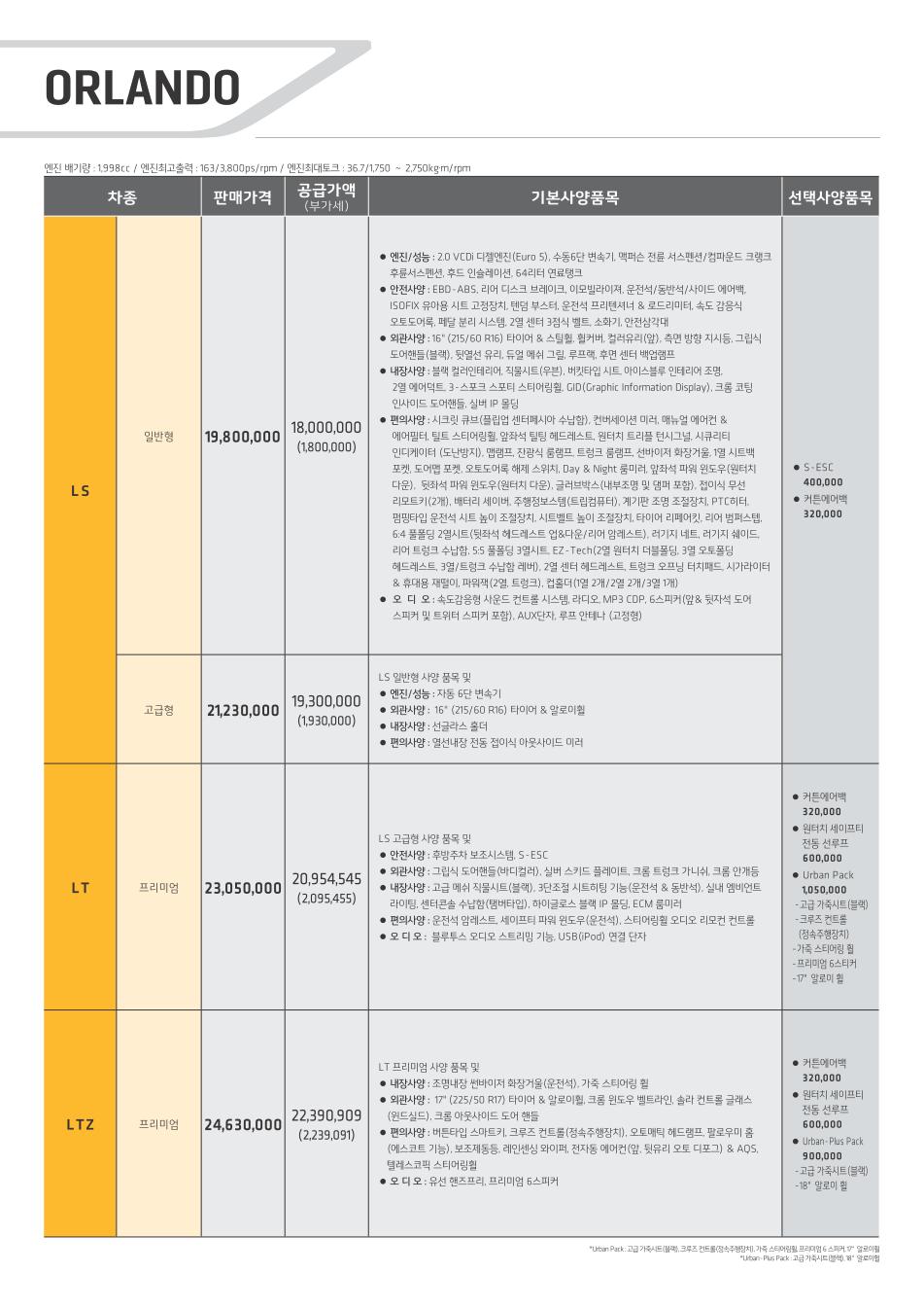 ※ 본 가격표의 모든 저작권은 해당 차량 제조사에 있습니다.