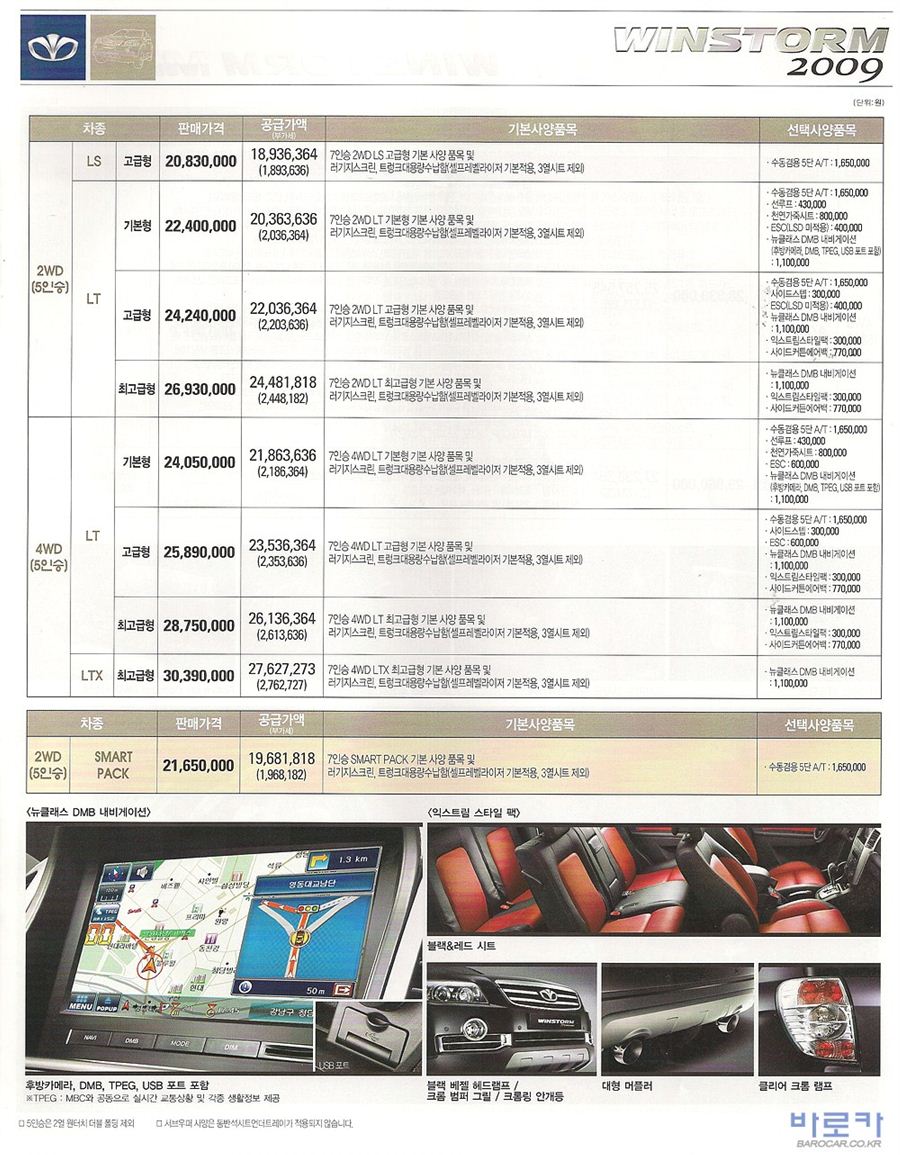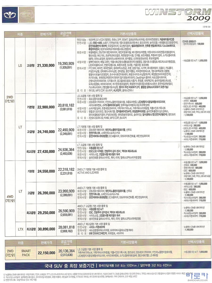 2008년 11월 윈스톰 신차가격표