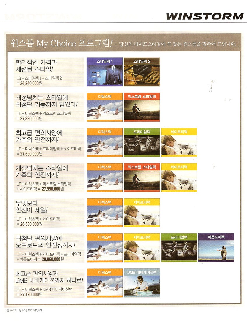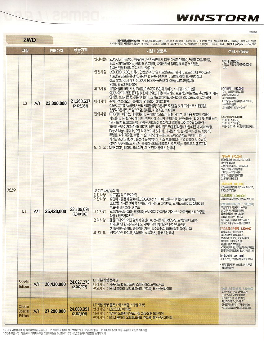 2010년 7월 윈스톰 신차가격표