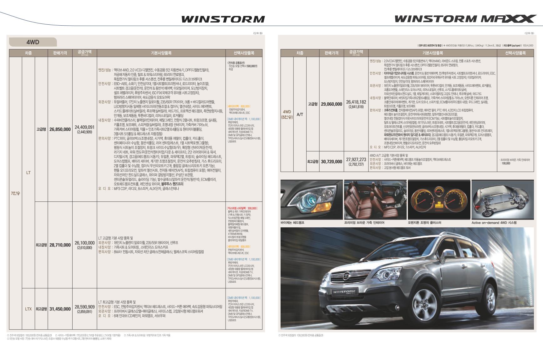 2010년 12월 윈스톰 & 윈스톰맥스 신차가격표