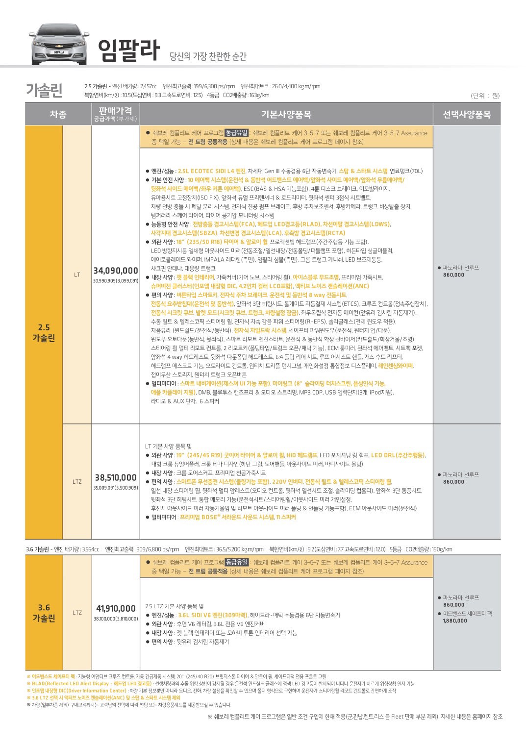 2016년 11월 임팔라 신차가격표