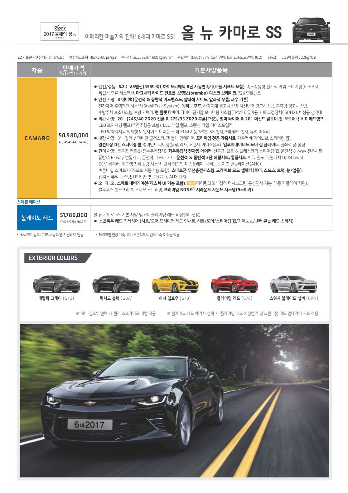 2018년 12월 카마로 가격표 (더뉴카마로SS)
