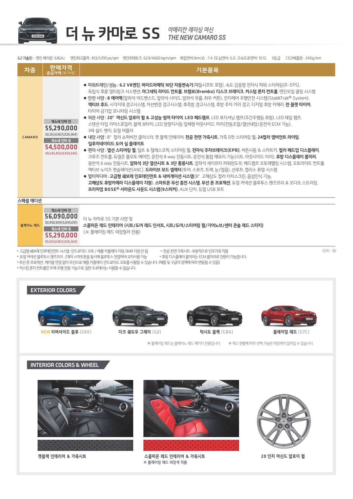 2020년 10월 카마로 신차가격표 (2021년형 카마로 출시)