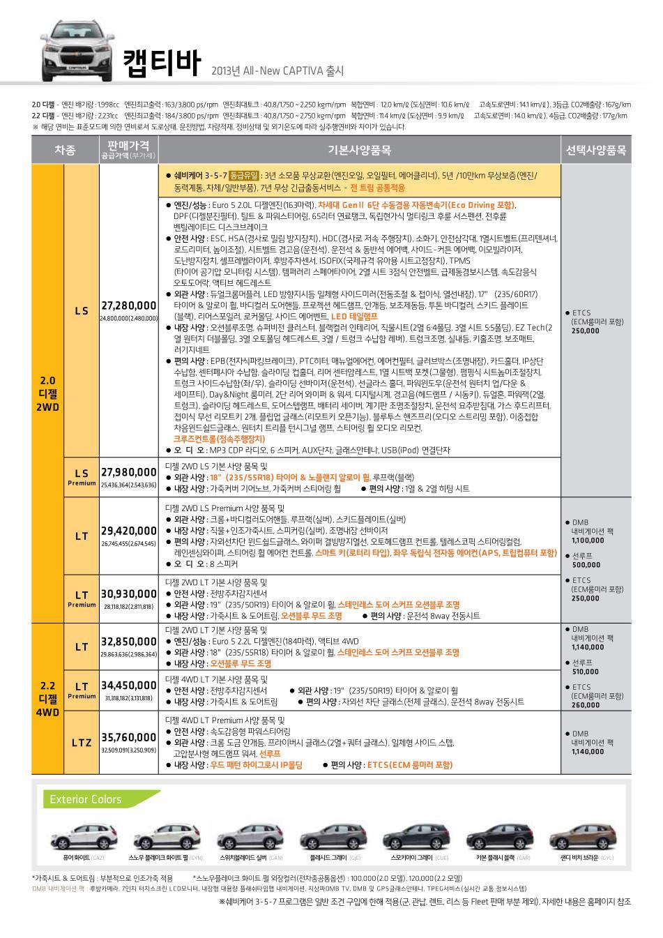 2013년 1월 캡티바 신차가격표
