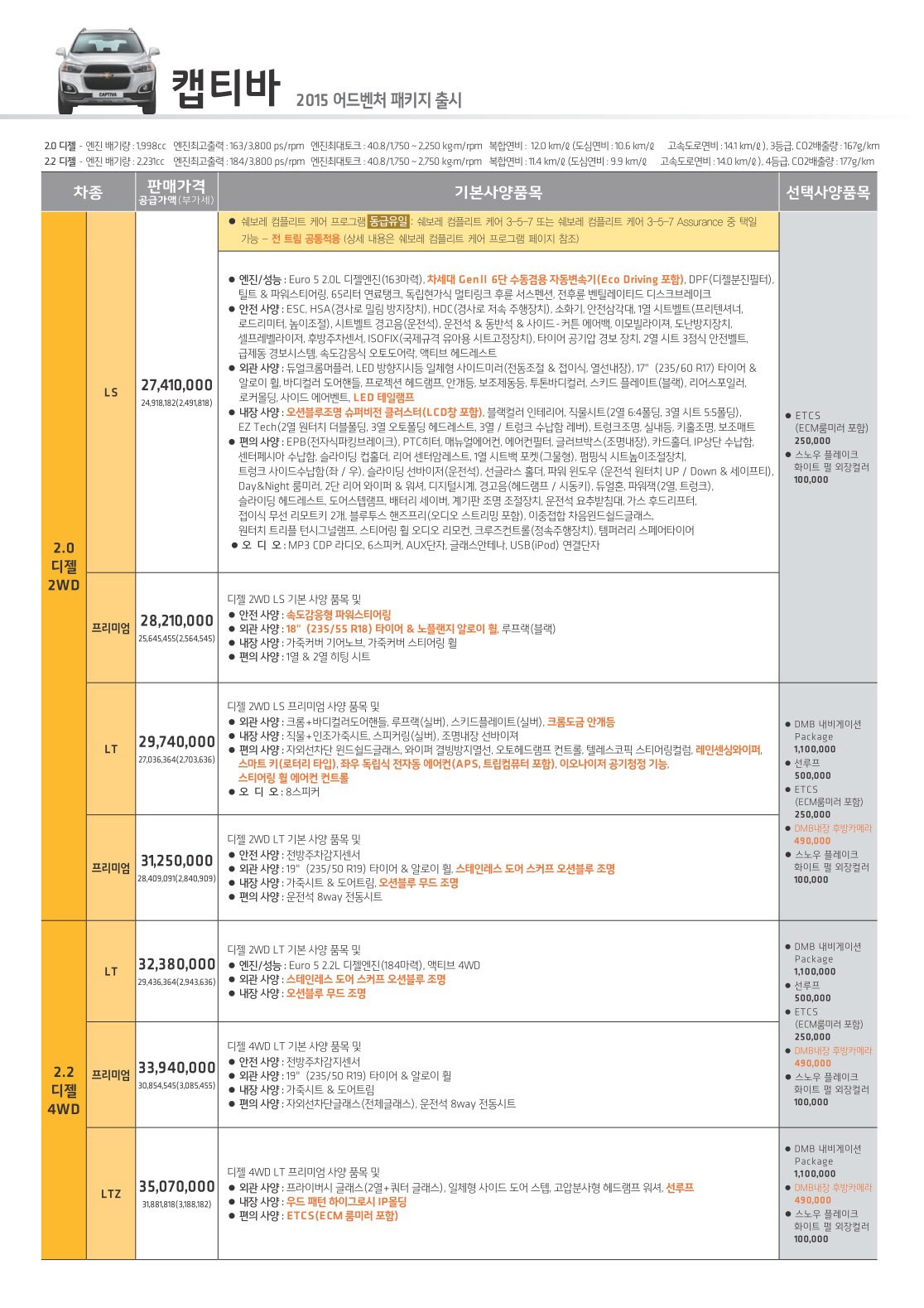 2015년 1월 캡티바 신차가격표