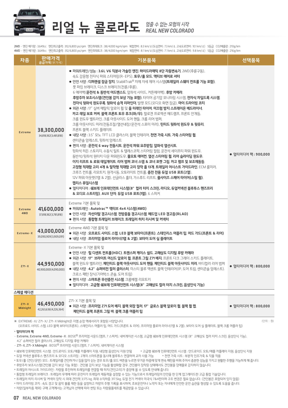 2020년 9월 콜로라도 신차가격표 (2021년형 리얼 뉴 콜로라도 출시)
