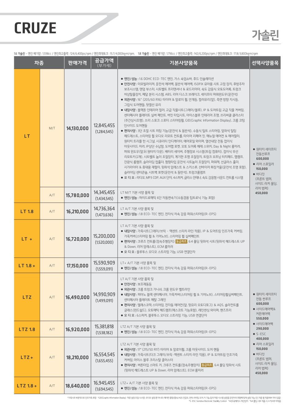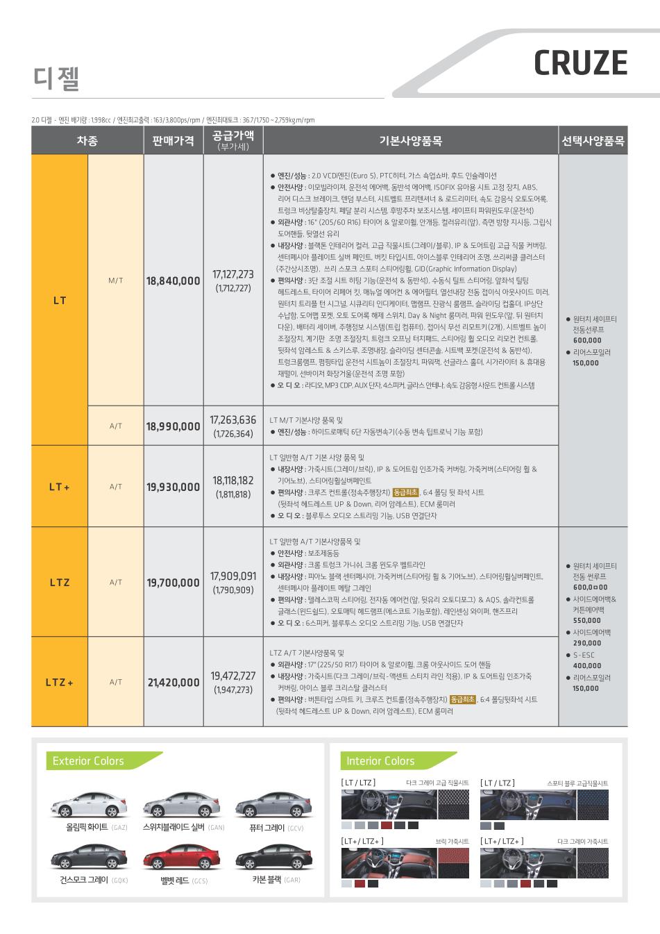 2011년 6월 크루즈 신차가격표